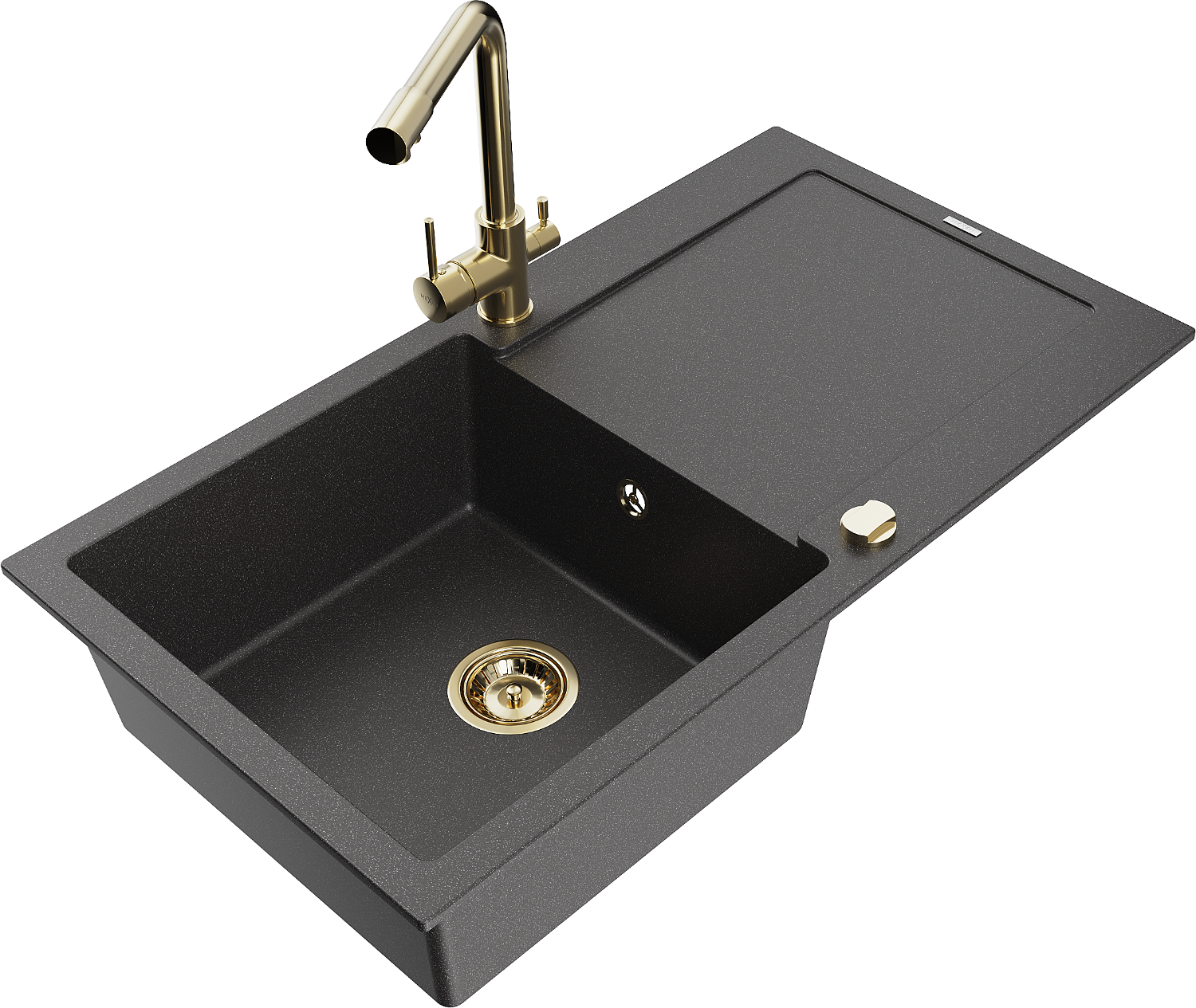 Il lavello è realizzato in granito di alta qualità. Rappresenta un complemento elegante e, soprattutto, pratico per ogni cucina, indipendentemente dal suo stile. L'alta qualità e la durata del granito garantiscono un utilizzo che dura per molti anni.