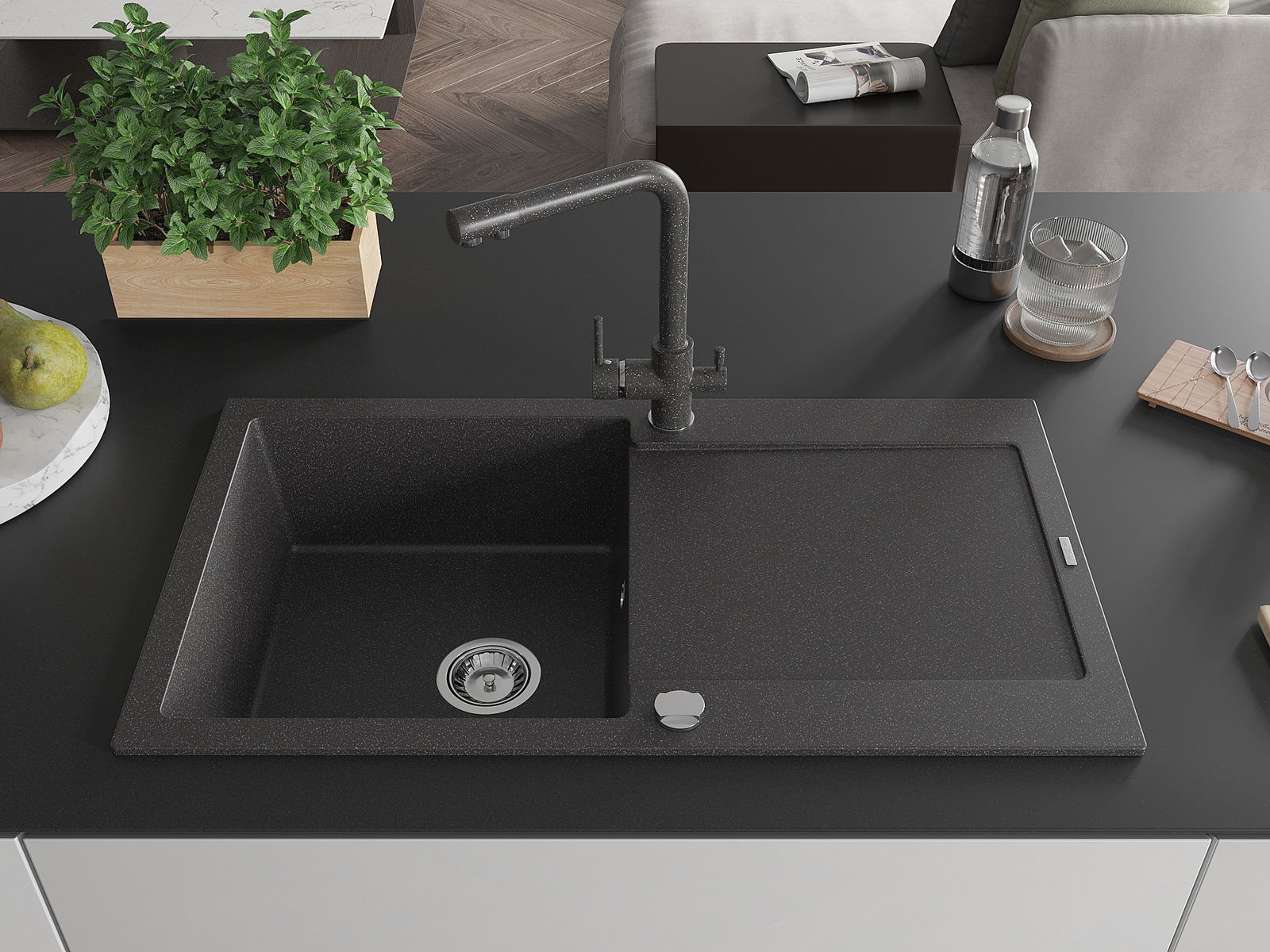 La scelta di un lavello con sgocciolatoio è una soluzione pratica che consente di riporre piatti, verdure e frutta lavati. Lo sgocciolatoio facilita la cucina quotidiana e aiuta a mantenere l'ordine in cucina.