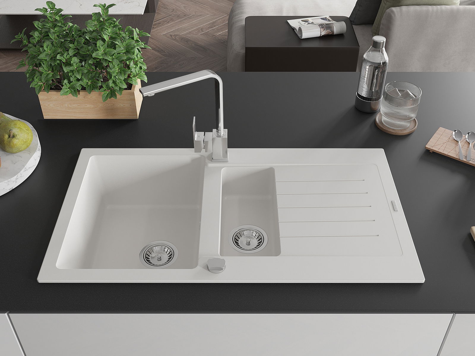 La scelta di un lavello con sgocciolatoio è una soluzione pratica che consente di riporre piatti, verdure e frutta lavati. Lo sgocciolatoio facilita la cucina quotidiana e aiuta a mantenere l'ordine in cucina.