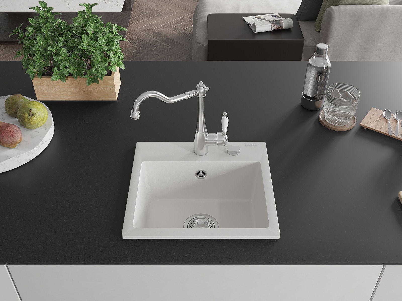 Il lavello è realizzato in granito di alta qualità. Rappresenta un complemento elegante e, soprattutto, pratico per ogni cucina, indipendentemente dal suo stile. L'alta qualità e la durata del granito garantiscono un utilizzo che dura per molti anni.