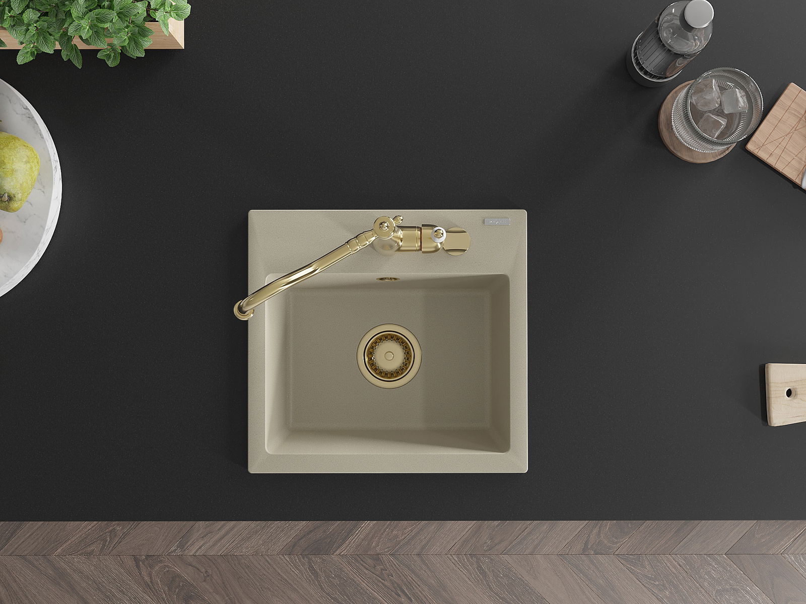 Mexen Milo lavello in granito 1-vasca con miscelatore da cucina Carla, beige - 6505-69-670700-50
