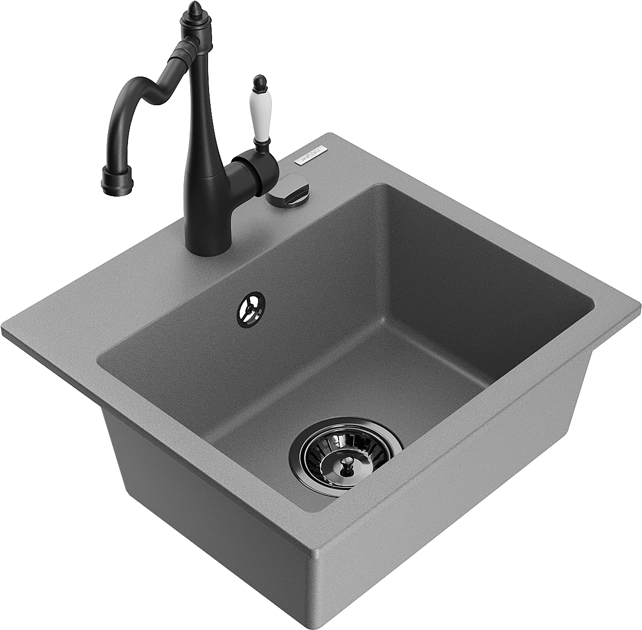 Mexen Milo lavello in granito a 1 vasca con rubinetto da cucina Carla, grigio - 6505-71-670700-70-B