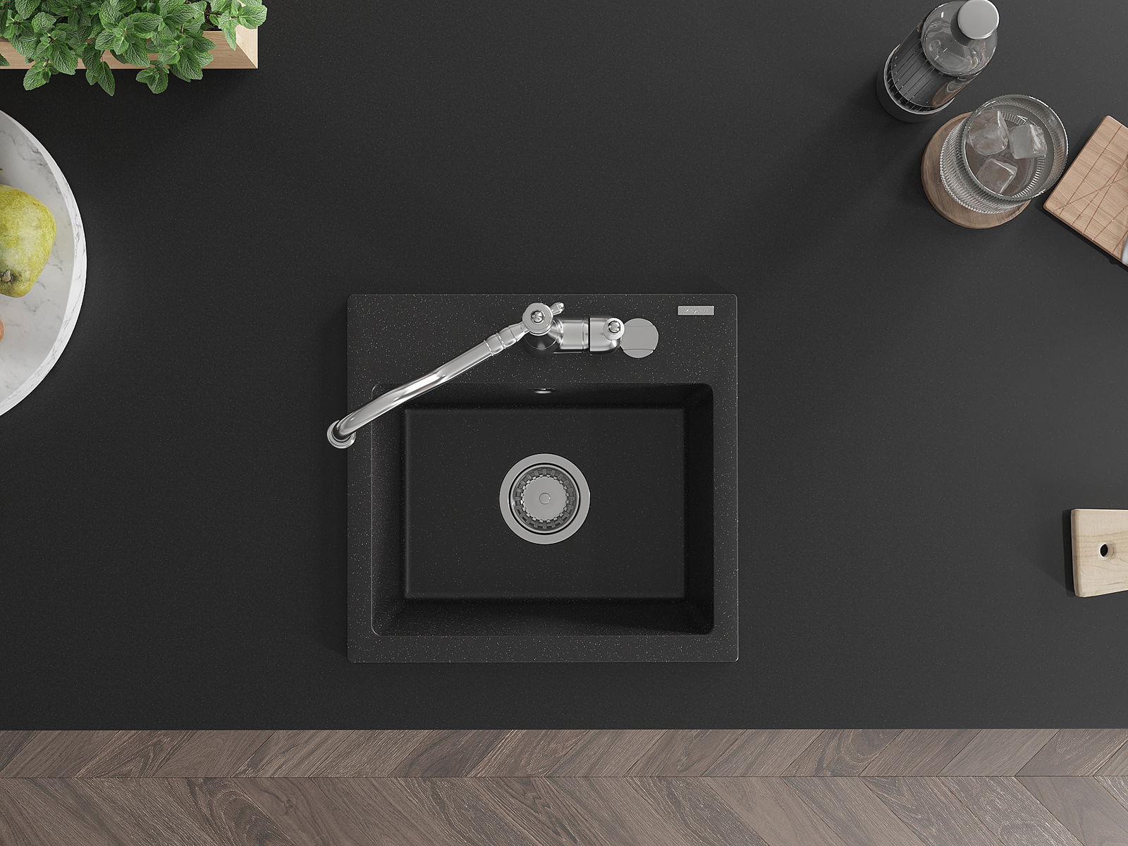 Mexen Milo lavello in granito a 1 vasca con miscelatore da cucina Carla, nero/argentato metallico - 6505-73-670700-00