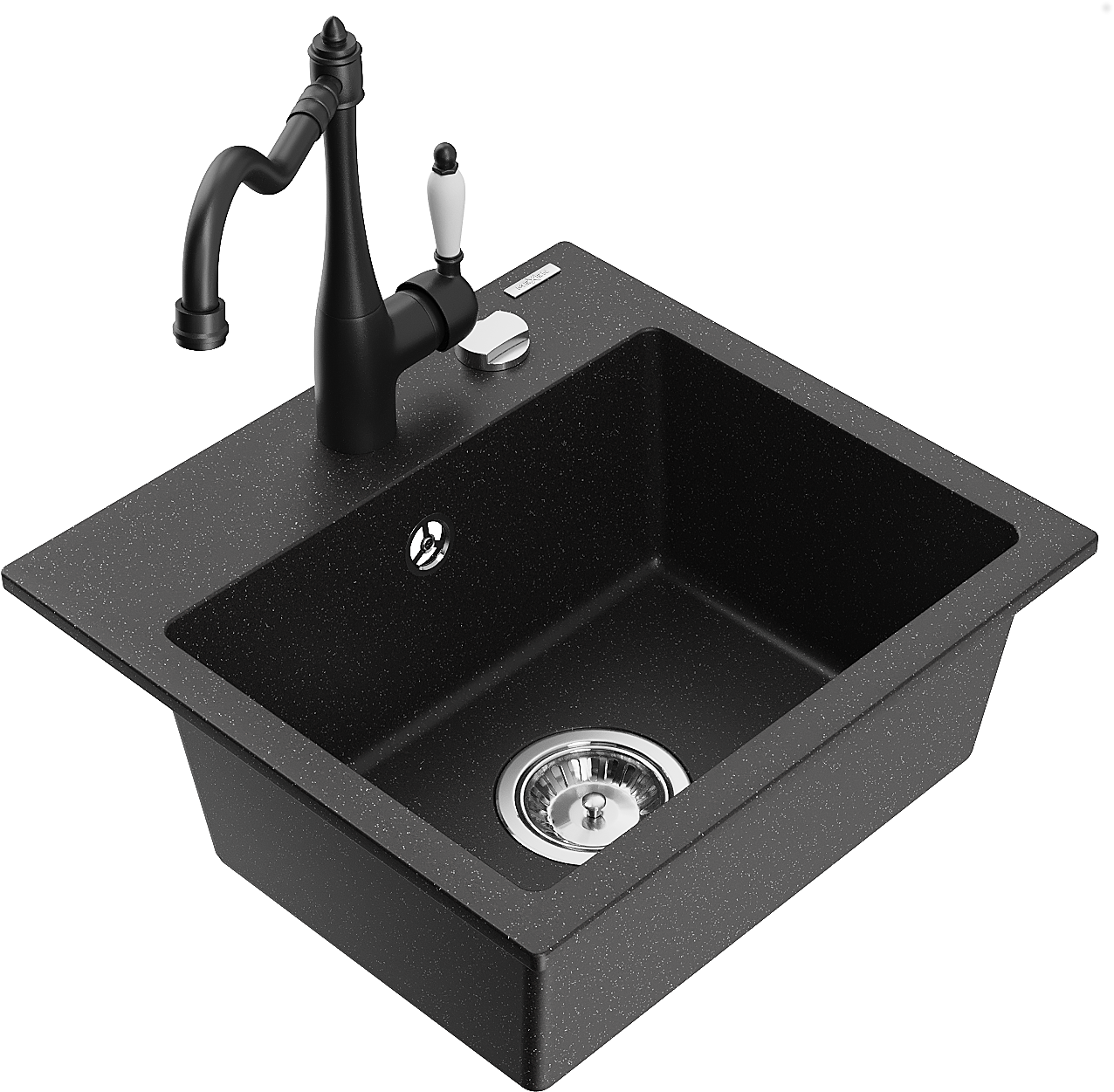 Mexen Milo lavello in granito a 1 vasca con miscelatore da cucina Carla, nero/argento metallico - 6505-73-670700-70
