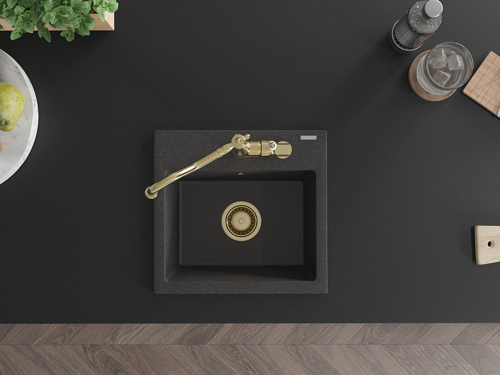 Mexen Milo lavello in granito a 1 vasca con miscelatore da cucina Carla, nero maculato - 6505-76-670700-50