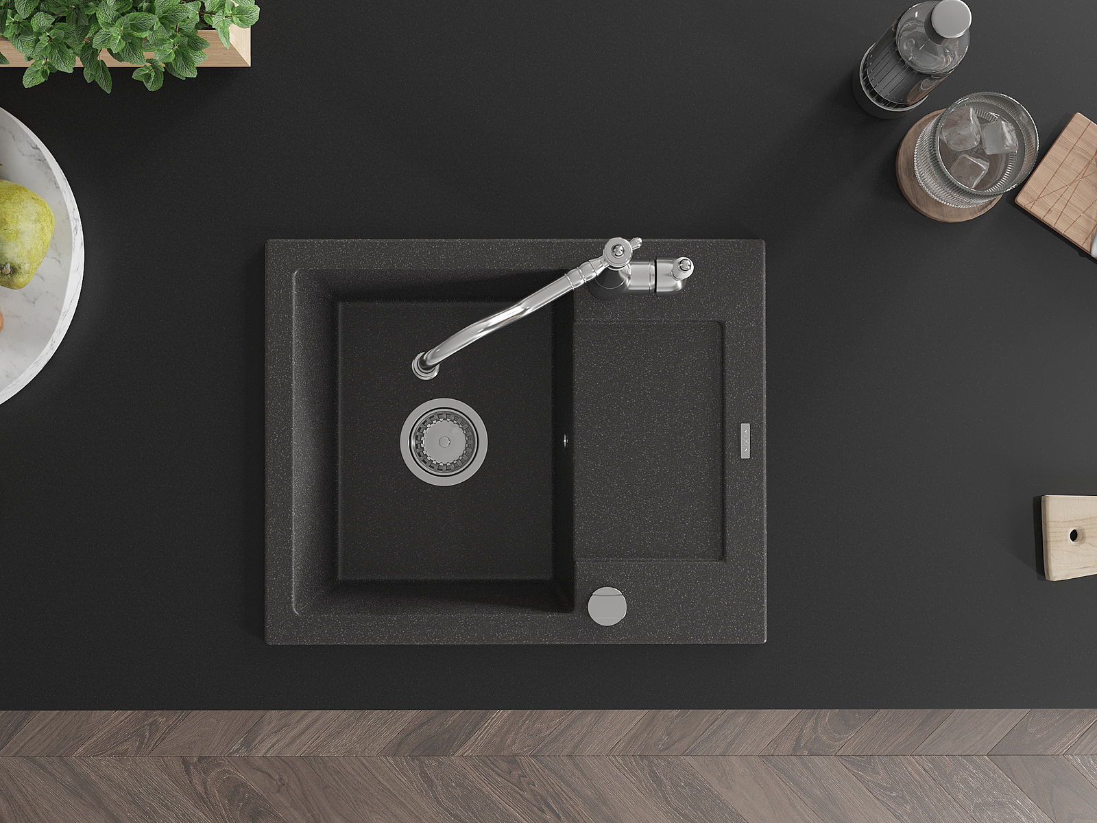 Il lavello è realizzato in granito di alta qualità. Rappresenta un complemento elegante e, soprattutto, pratico per ogni cucina, indipendentemente dal suo stile. L'alta qualità e la durata del granito garantiscono un utilizzo che dura per molti anni.
