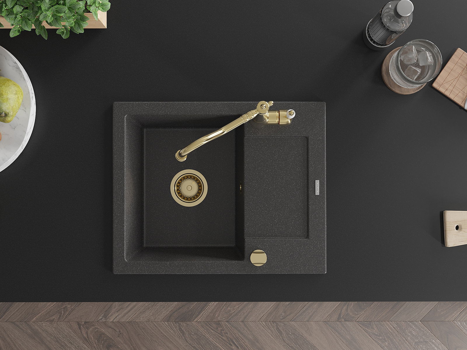 Mexen Enzo lavello in granito a 1 vasca con scolapiatti e rubinetto da cucina Carla, nero maculato - 6506-76-670700-50