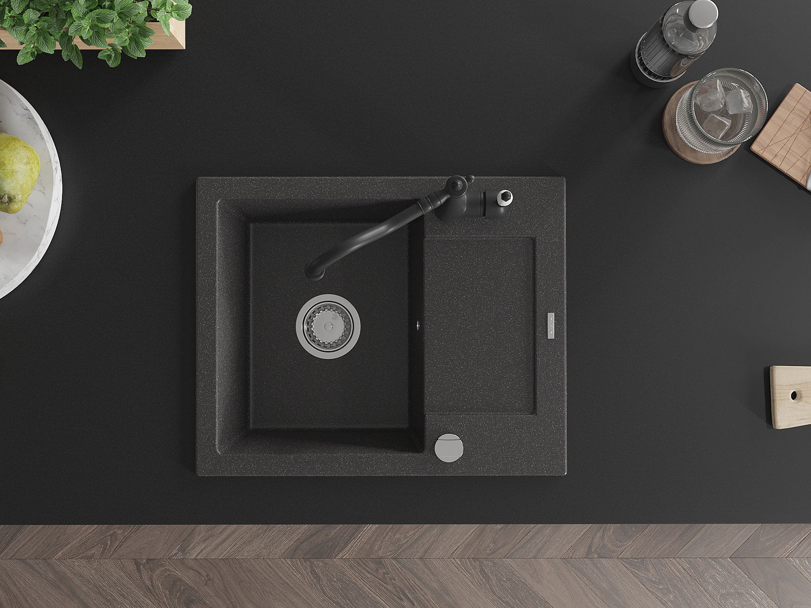 Il lavello è realizzato in granito di alta qualità. Rappresenta un complemento elegante e, soprattutto, pratico per ogni cucina, indipendentemente dal suo stile. L'alta qualità e la durata del granito garantiscono un utilizzo che dura per molti anni.