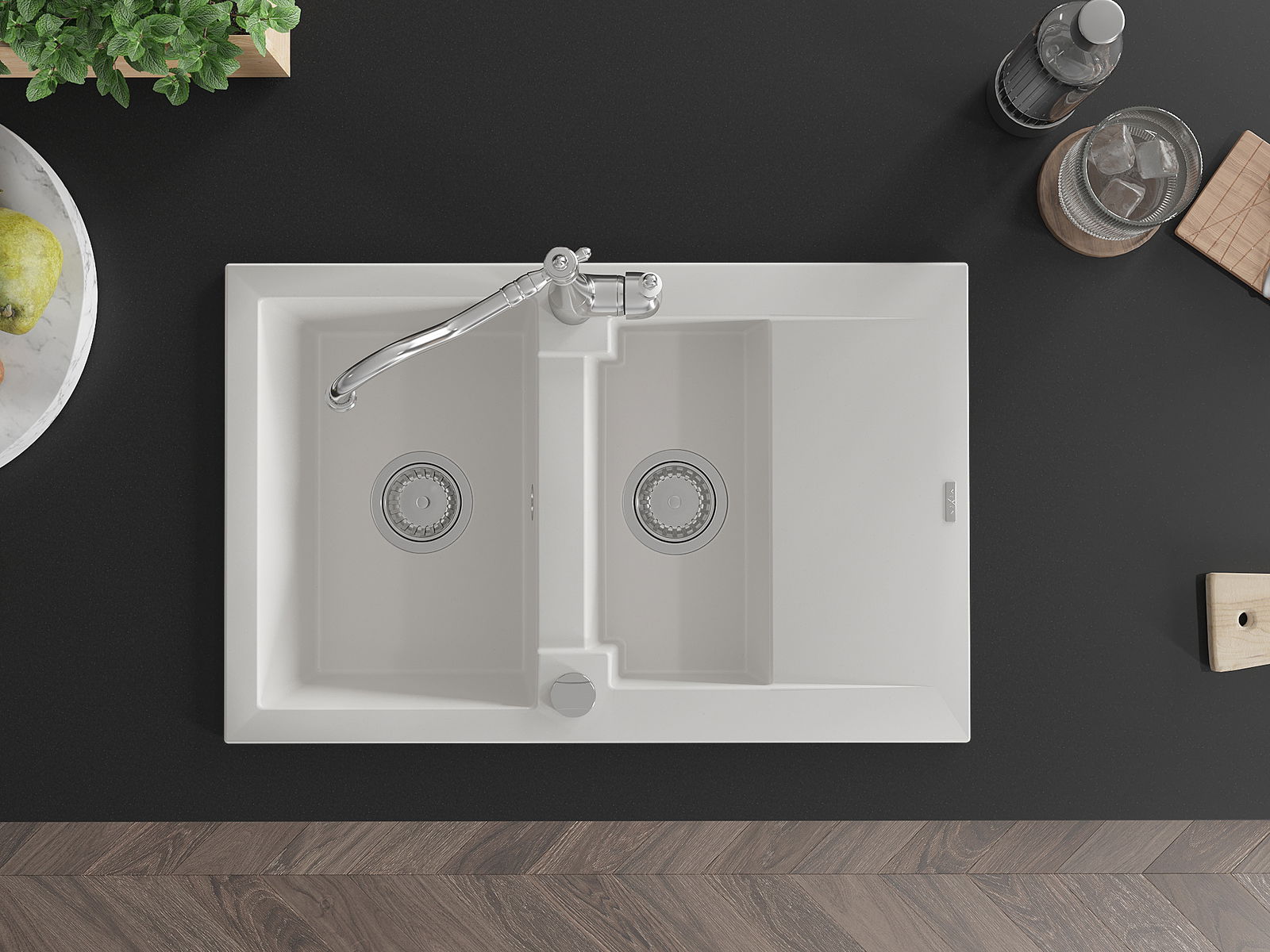 Mexen Gaspar lavello in granito 1,5 vasche con scolapiatti e miscelatore da cucina Carla, bianco - 6507-20-670700-00
