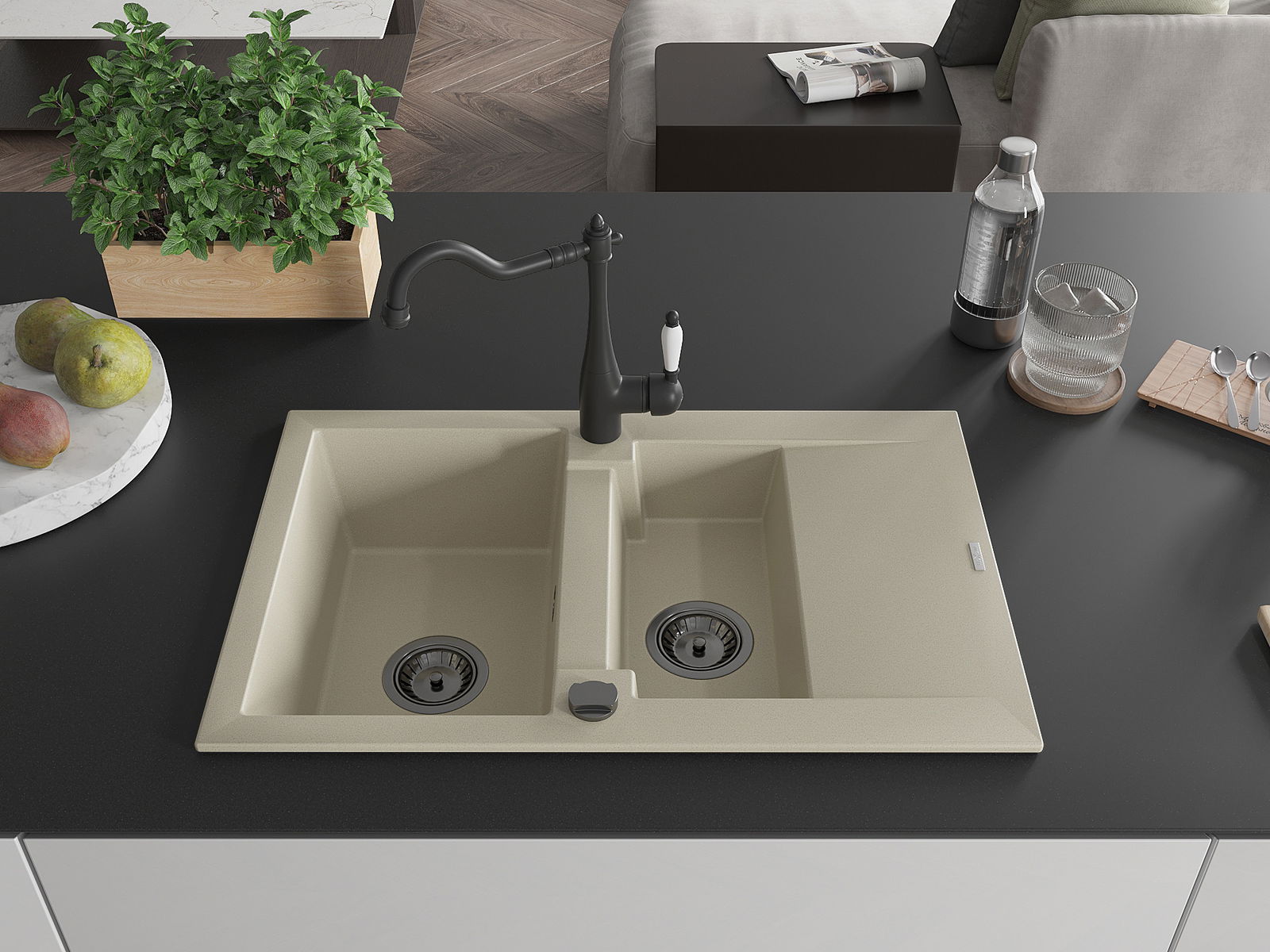 Il lavello è realizzato in granito di alta qualità. Rappresenta un complemento elegante e, soprattutto, pratico per ogni cucina, indipendentemente dal suo stile. L'alta qualità e la durata del granito garantiscono un utilizzo che dura per molti anni.