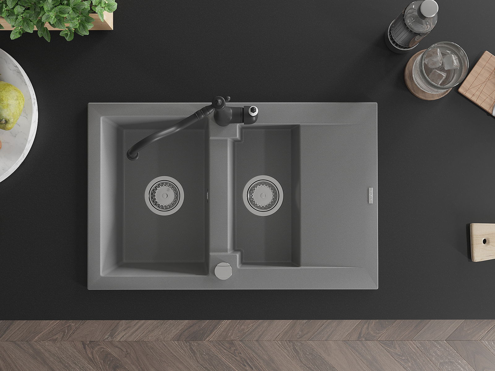 Il lavello è realizzato in granito di alta qualità. Rappresenta un complemento elegante e, soprattutto, pratico per ogni cucina, indipendentemente dal suo stile. L'alta qualità e la durata del granito garantiscono un utilizzo che dura per molti anni.