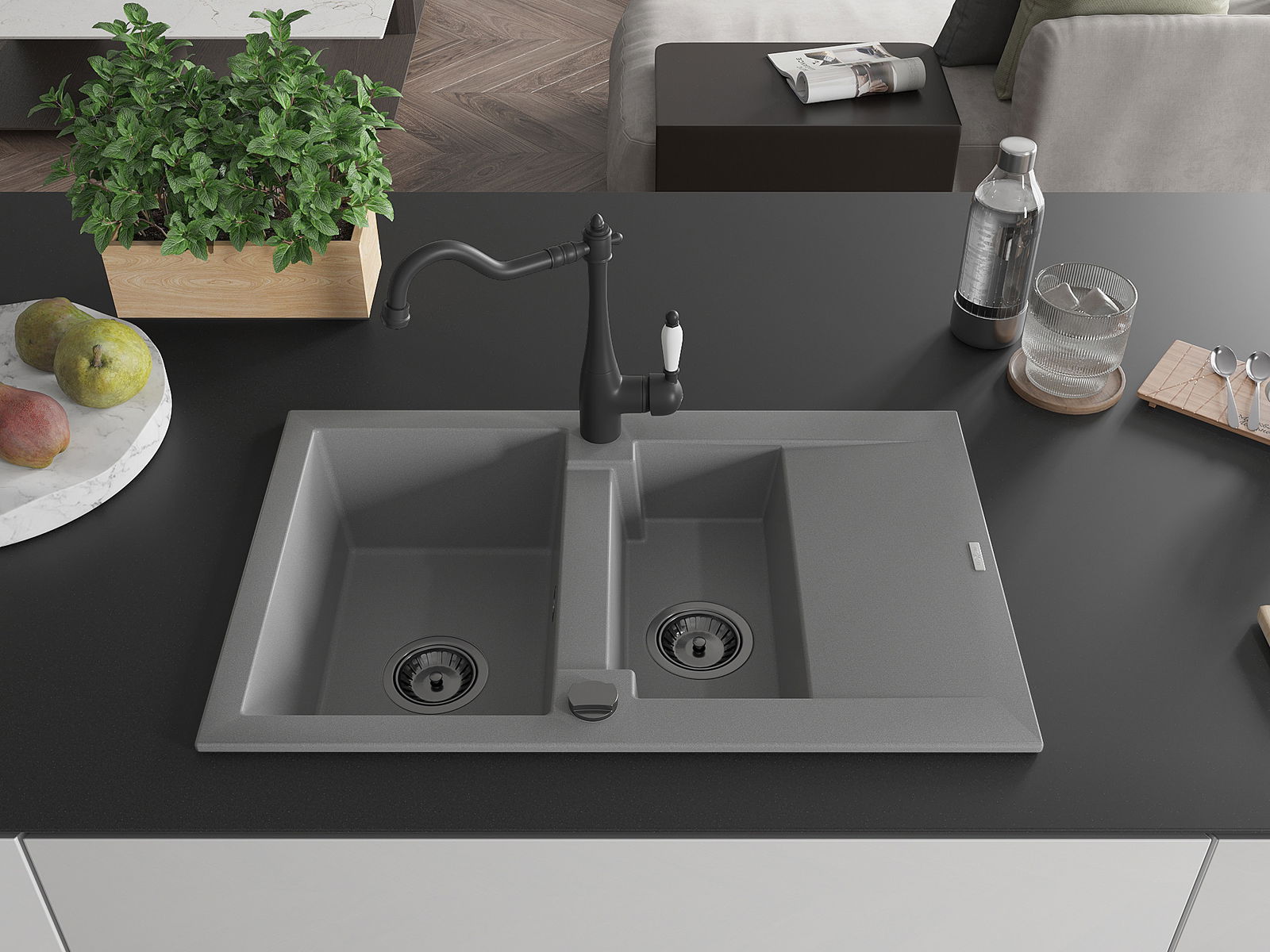 Il lavello è realizzato in granito di alta qualità. Rappresenta un complemento elegante e, soprattutto, pratico per ogni cucina, indipendentemente dal suo stile. L'alta qualità e la durata del granito garantiscono un utilizzo che dura per molti anni.