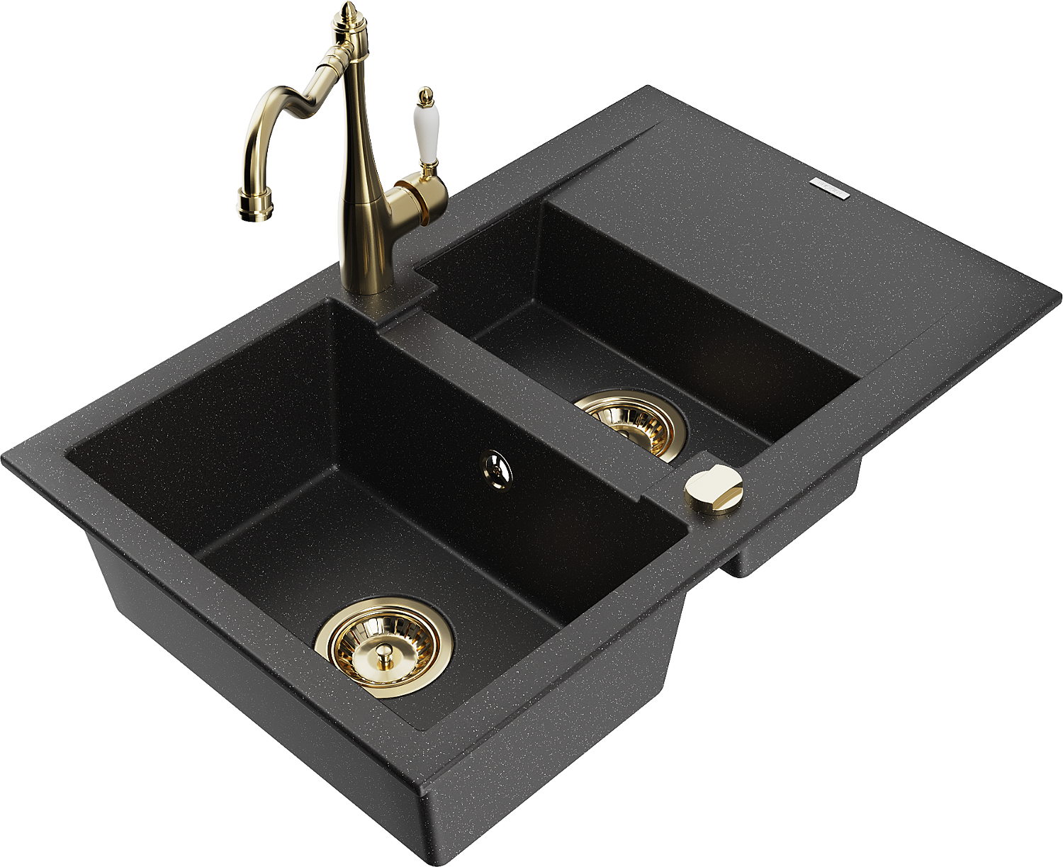 Mexen Gaspar lavello in granito 1,5 vasca con sgocciolatoio e rubinetto da cucina Carla nero/argento metallizzato