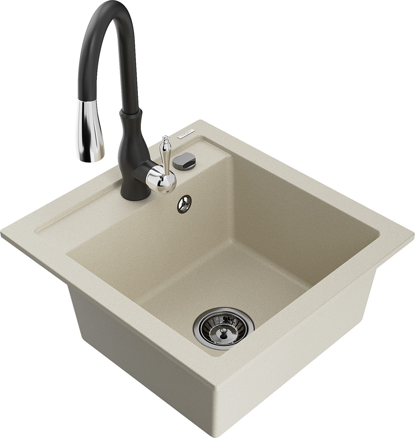 Mexen Vito lavello in granito a 1 vasca con miscelatore cucina Savita, beige - 6503-69-672601-70