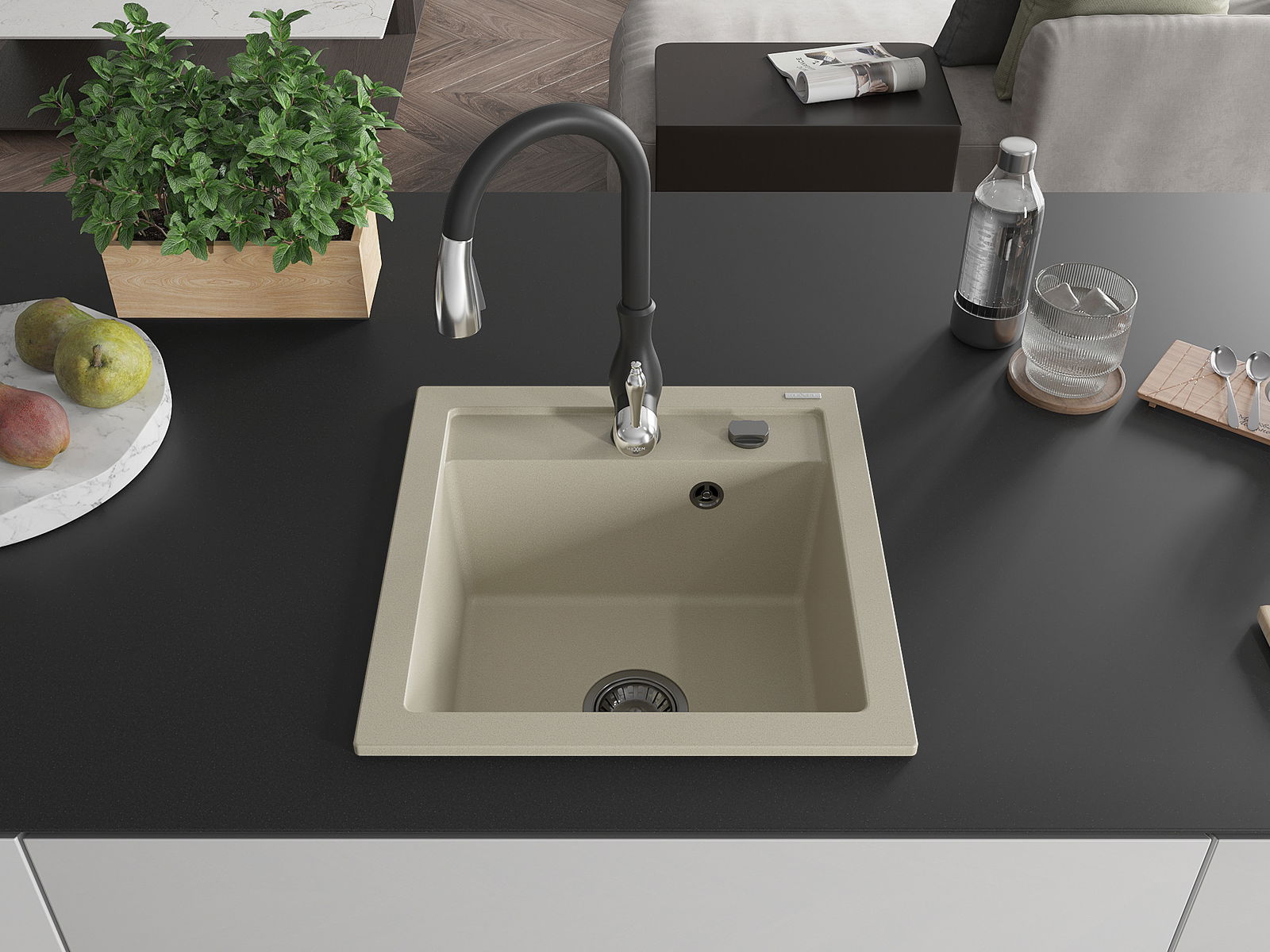 Il lavello è realizzato in granito di alta qualità. Rappresenta un complemento elegante e, soprattutto, pratico per ogni cucina, indipendentemente dal suo stile. L'alta qualità e la durata del granito garantiscono un utilizzo che dura per molti anni.