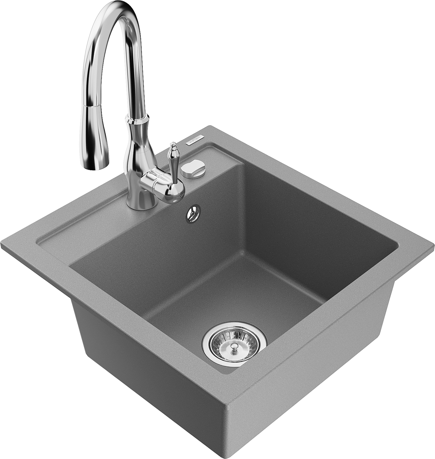 Mexen Vito lavello in granito a 1 vasca con rubinetto da cucina Savita, grigio - 6503-71-672601-00