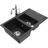 Mexen Gaspar lavello in granito 1,5 vasca con gocciolatoio e rubinetto da cucina Carla, nero maculato - 6507-76-670700-00