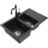 Mexen Gaspar lavello in granito 1,5 vasche con scolapiatti e miscelatore da cucina Carla, nero maculato - 6507-76-670700-76