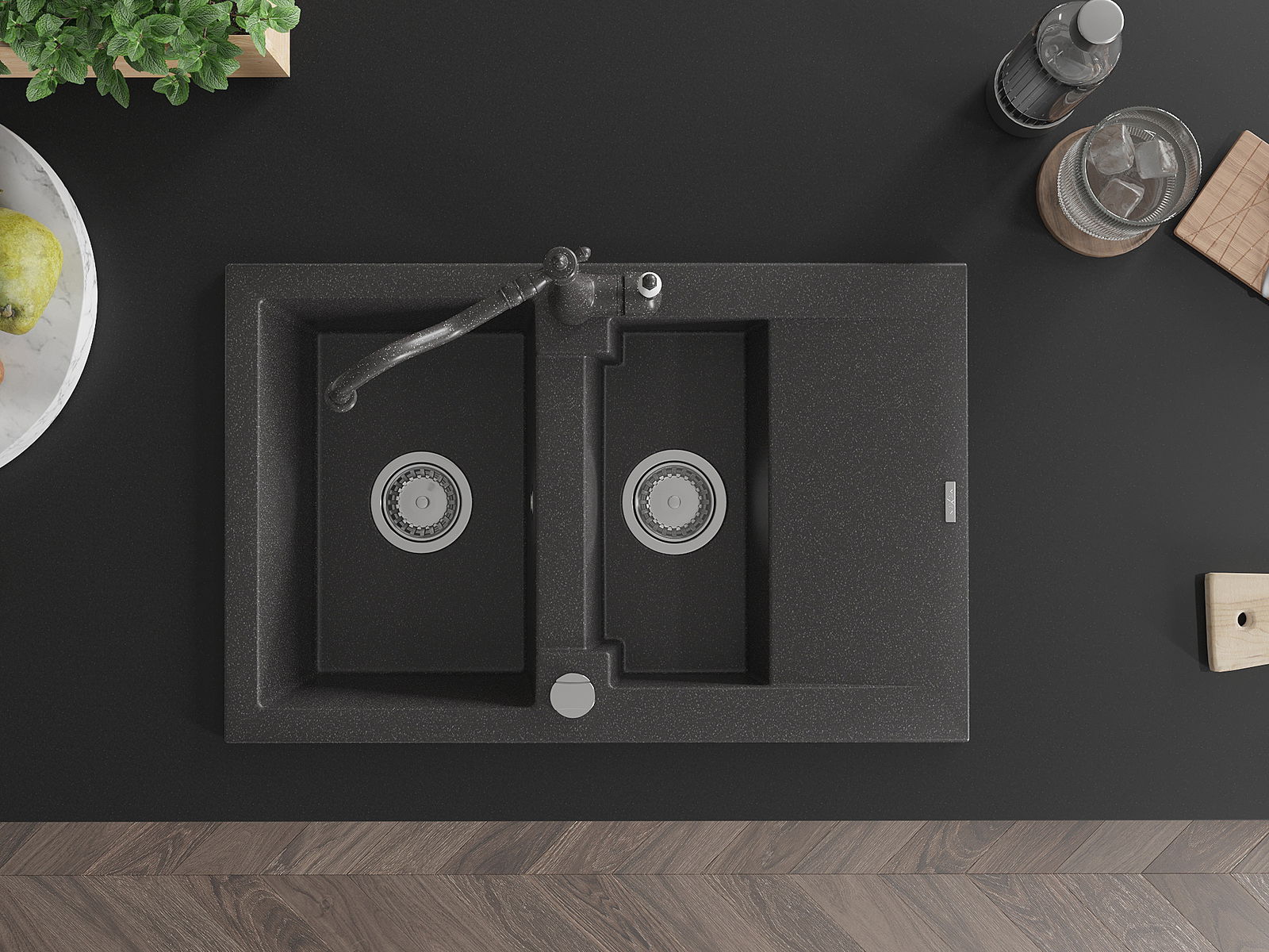 Il lavello è realizzato in granito di alta qualità. Rappresenta un complemento elegante e, soprattutto, pratico per ogni cucina, indipendentemente dal suo stile. L'alta qualità e la durata del granito garantiscono un utilizzo che dura per molti anni.