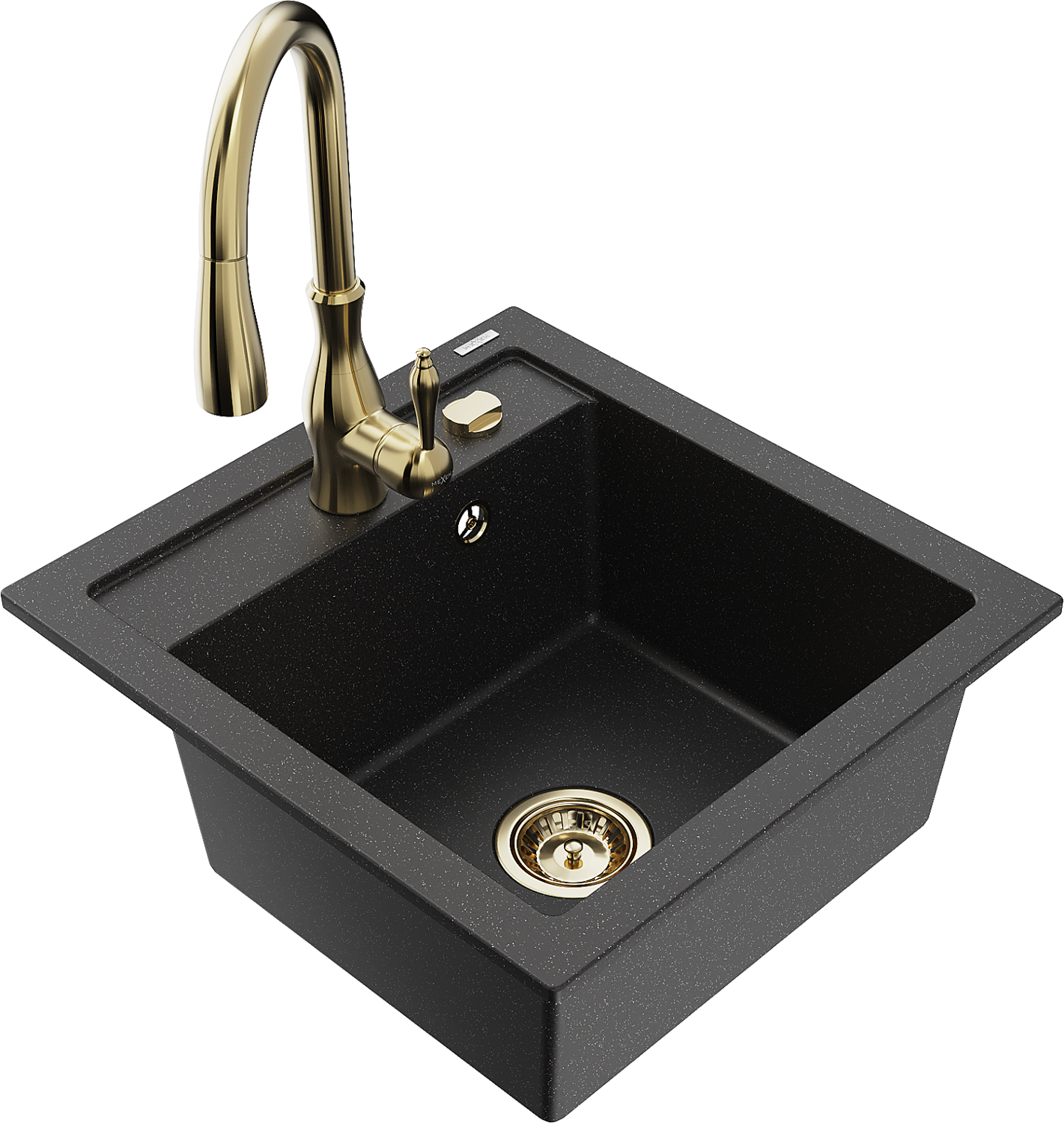 Mexen Vito lavello in granito a 1 vasca con rubinetto da cucina Savita, nero/metallo argento - 6503-73-672601-50