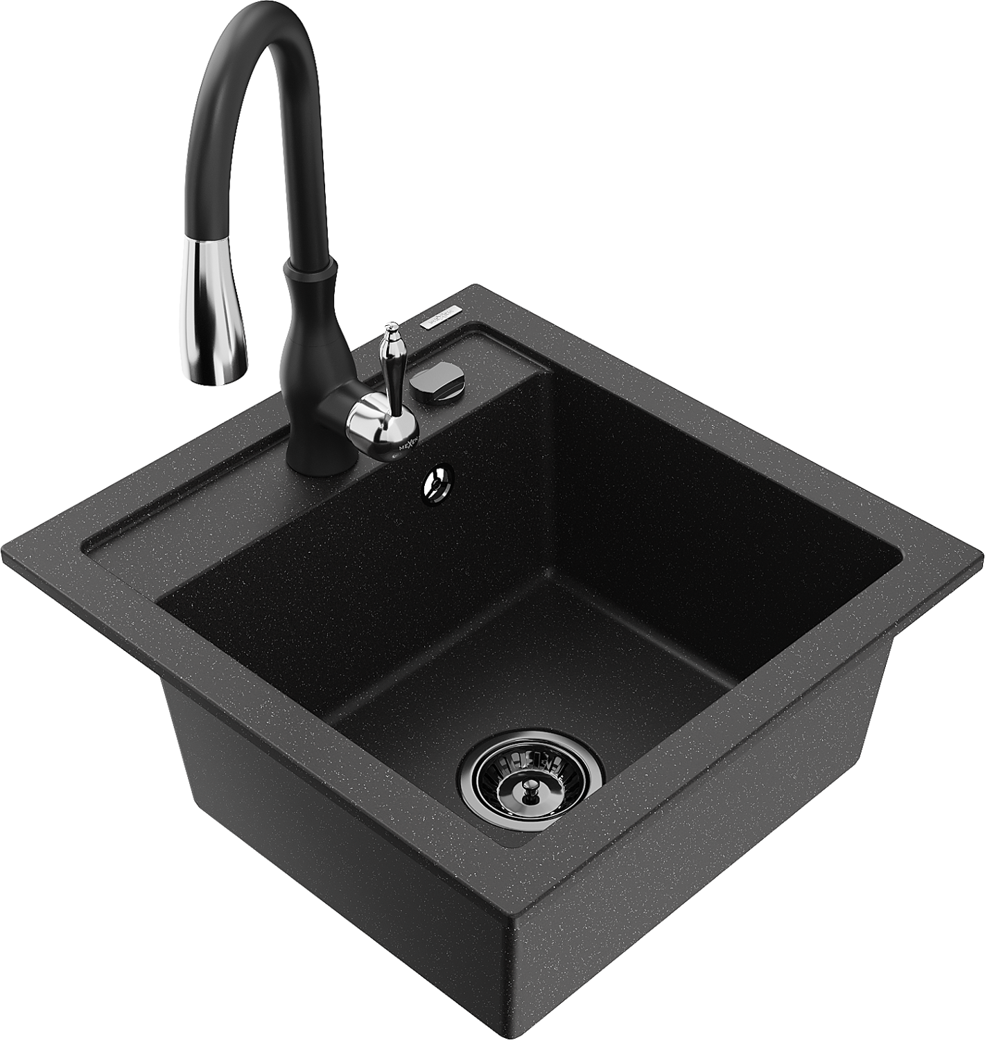 Mexen Vito lavello in granito 1-vasca con miscelatore cucina Savita, nero/metallo argento - 6503-73-672601-70-B
