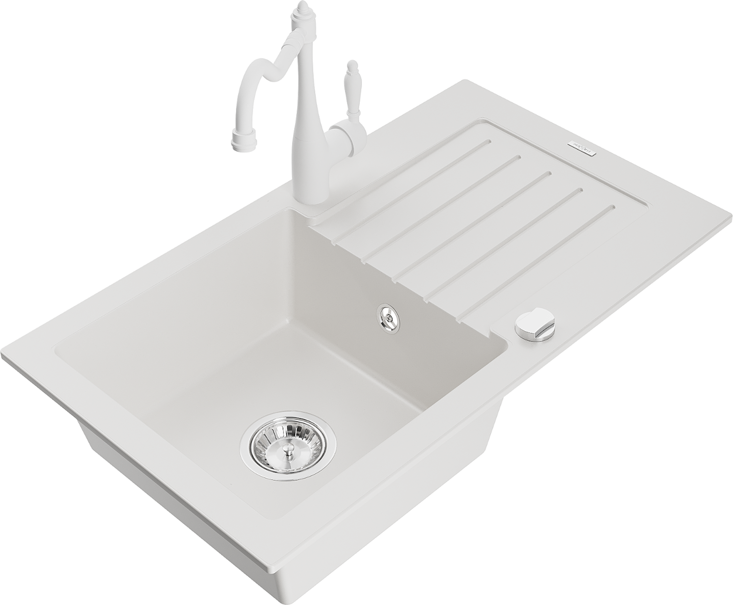 Mexen Pablo lavello in granito a 1 vasca con scolapiatti e rubinetto da cucina Carla, bianco - 6510-20-670700-20