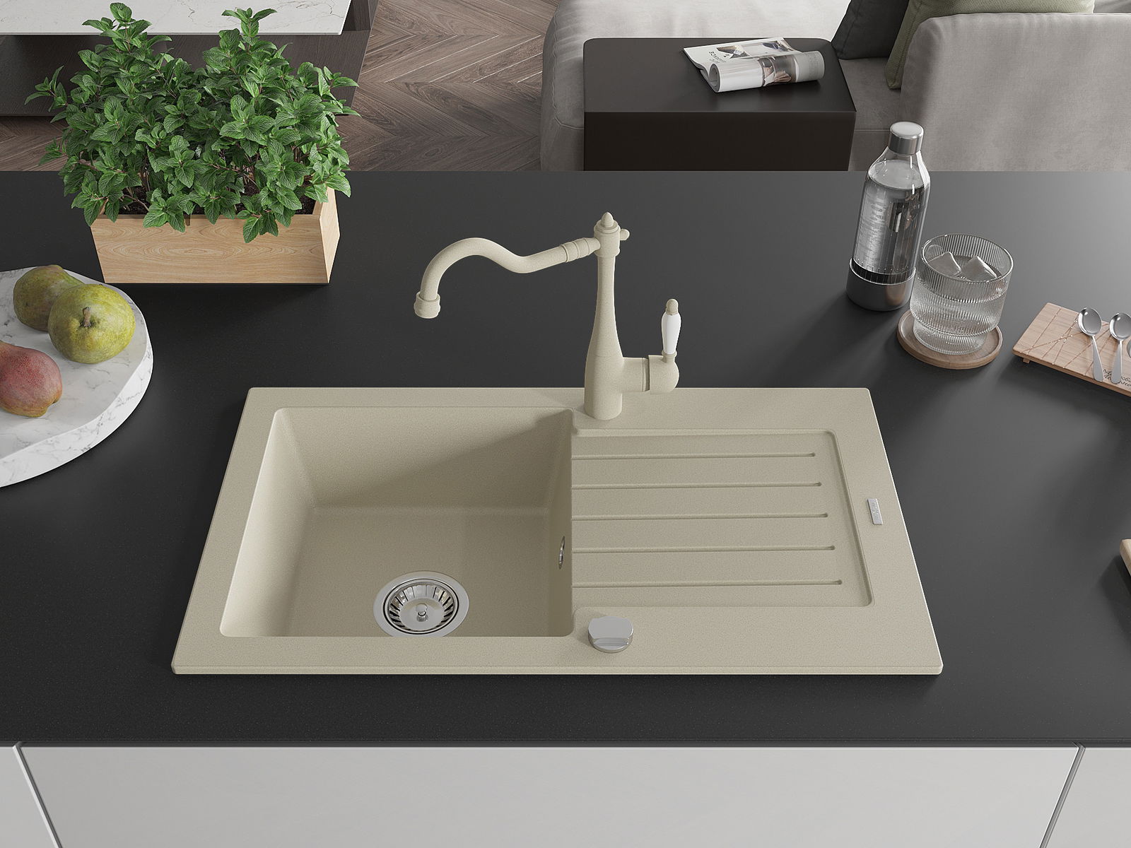 Mexen Pablo Lavello in composito di granito 1 vasca con sgocciolatoio e rubinetto da cucina Carla, beige - 6510-69-670700-69