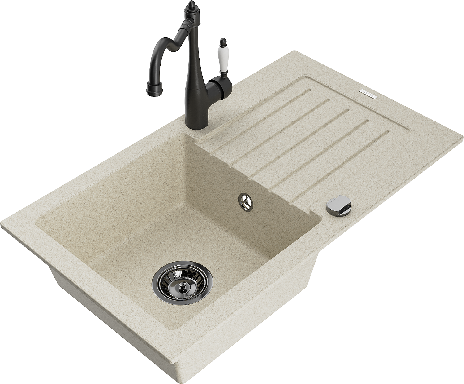 Il lavello è realizzato in granito di alta qualità. Rappresenta un complemento elegante e, soprattutto, pratico per ogni cucina, indipendentemente dal suo stile. L'alta qualità e la durata del granito garantiscono un utilizzo che dura per molti anni.