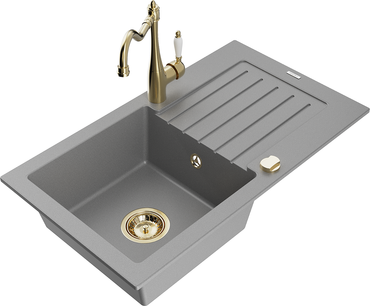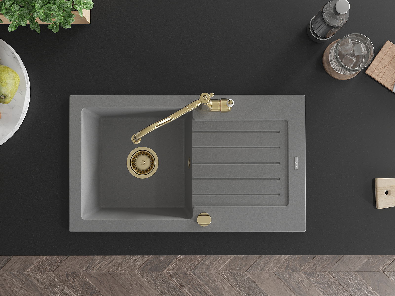 Mexen Pablo lavello in granito 1-vasca con sgocciolatoio e rubinetto da cucina Carla, grigio - 6510-71-670700-50