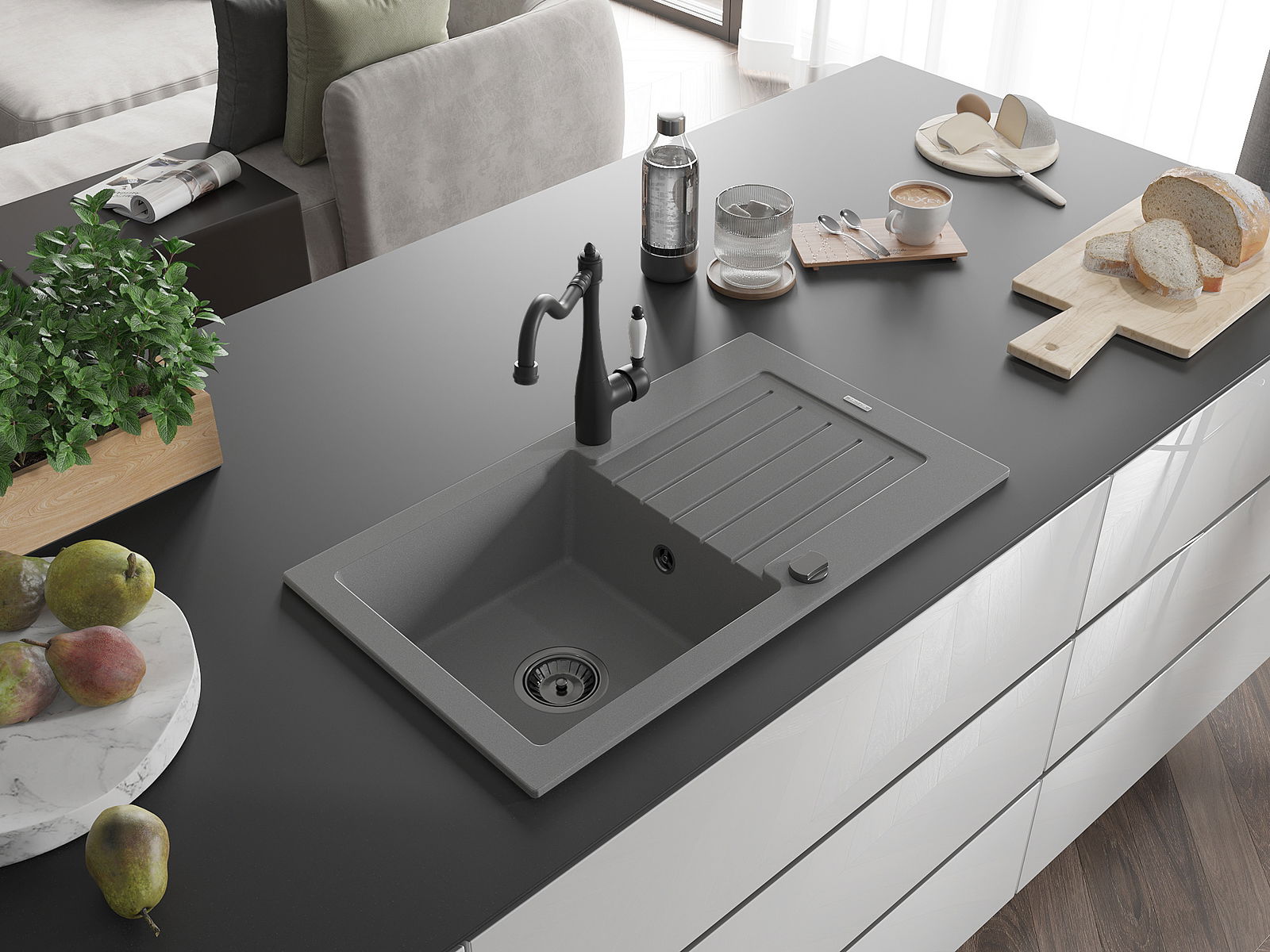 La scelta di un lavello con sgocciolatoio è una soluzione pratica che consente di riporre piatti, verdure e frutta lavati. Lo sgocciolatoio facilita la cucina quotidiana e aiuta a mantenere l'ordine in cucina.