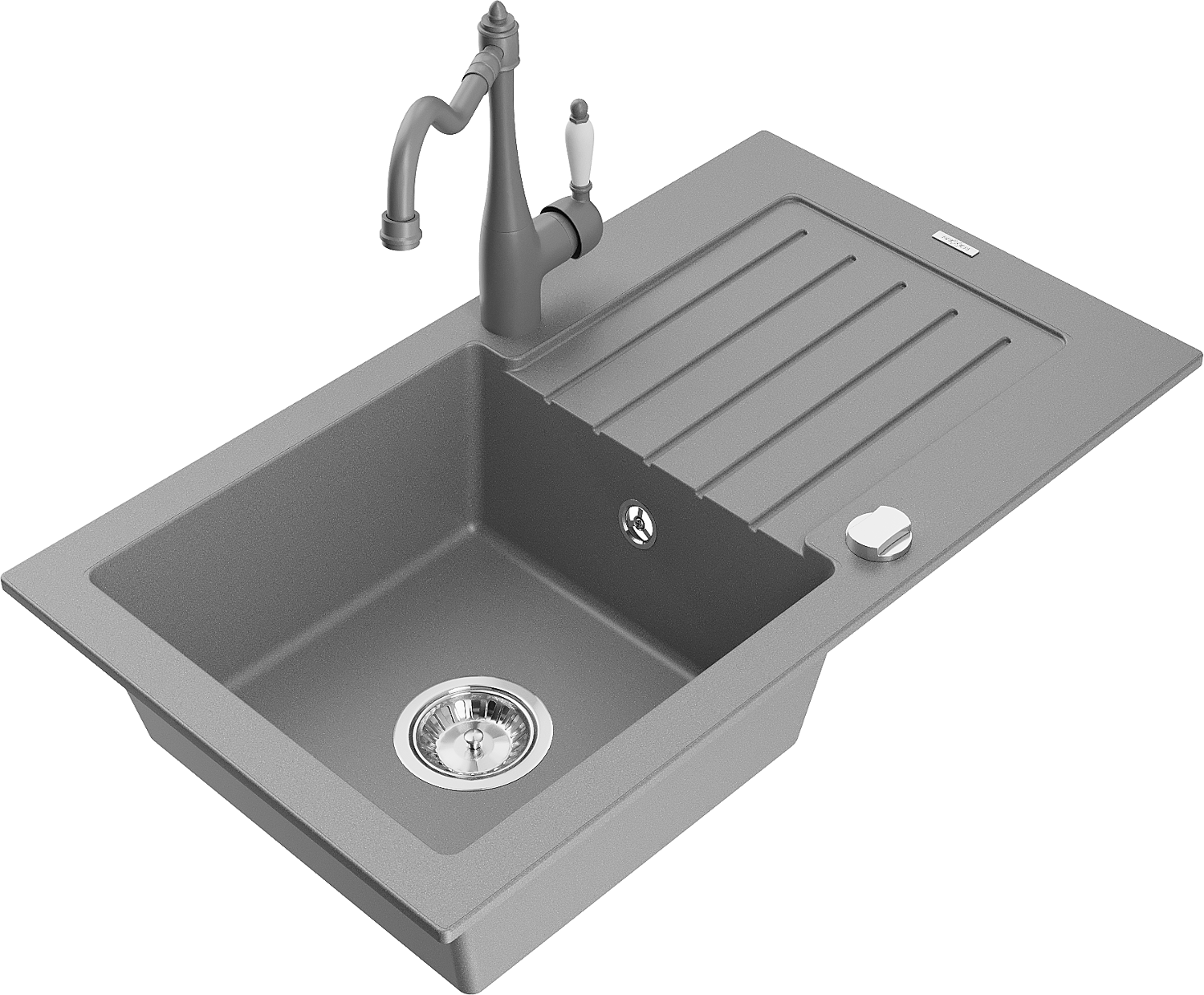 Mexen Pablo lavello in granito a 1 vasca con gocciolatoio e miscelatore da cucina Carla, grigio - 6510-71-670700-71