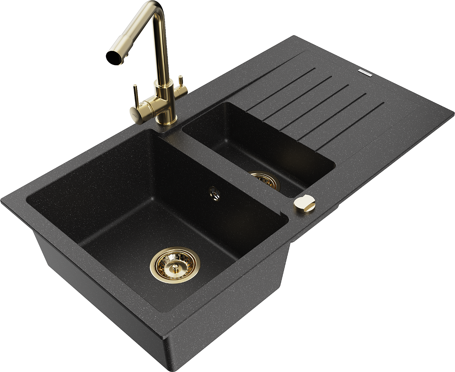 Il lavello è realizzato in granito di alta qualità. Rappresenta un complemento elegante e, soprattutto, pratico per ogni cucina, indipendentemente dal suo stile. L'alta qualità e la durata del granito garantiscono un utilizzo che dura per molti anni.