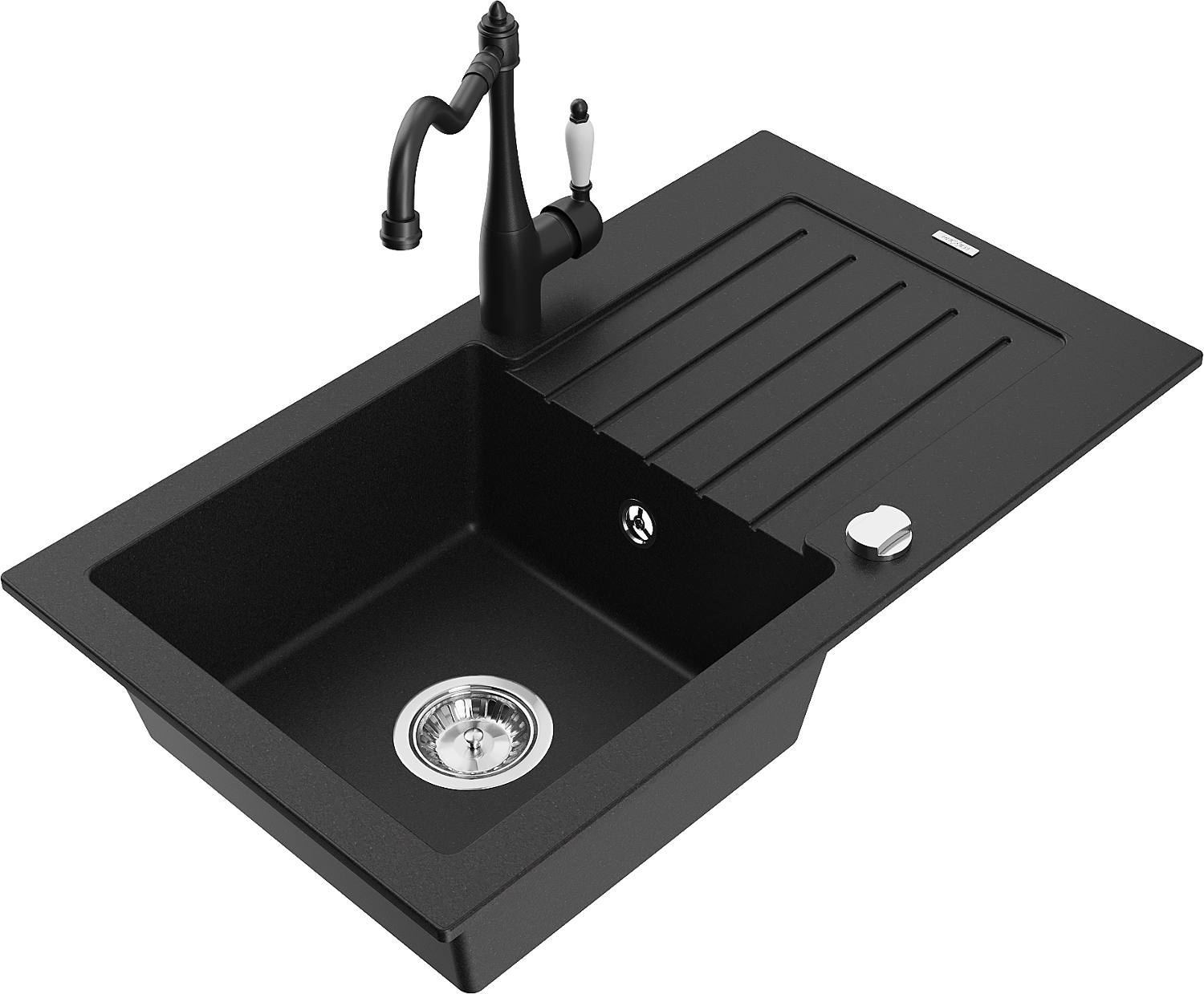 Mexen Pablo lavello in granito con 1 vasca, scolapiatti e rubinetto da cucina Carla, nero - 6510-77-670700-70