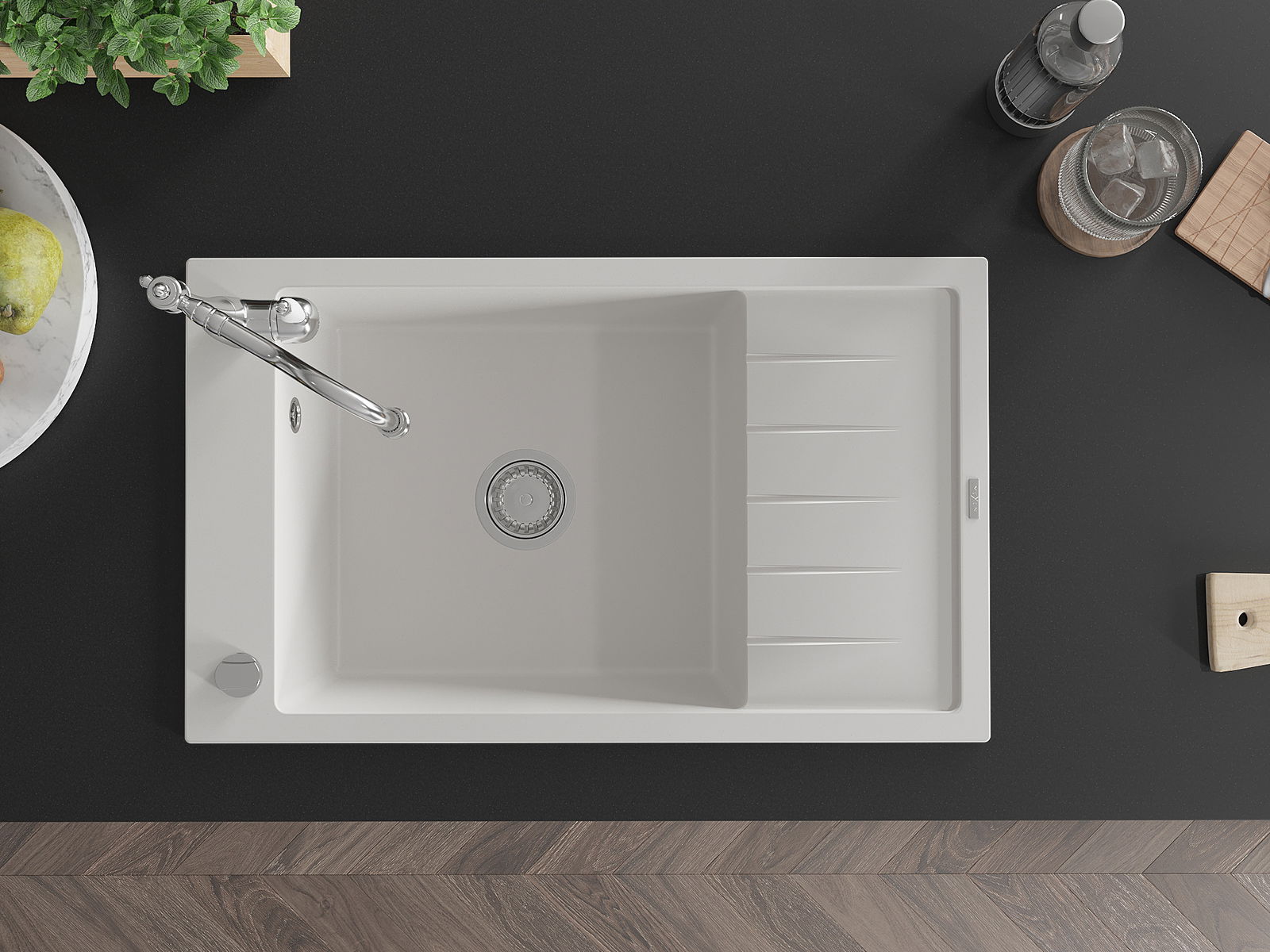 La scelta di un lavello con sgocciolatoio è una soluzione pratica che consente di riporre piatti, verdure e frutta lavati. Lo sgocciolatoio facilita la cucina quotidiana e aiuta a mantenere l'ordine in cucina.