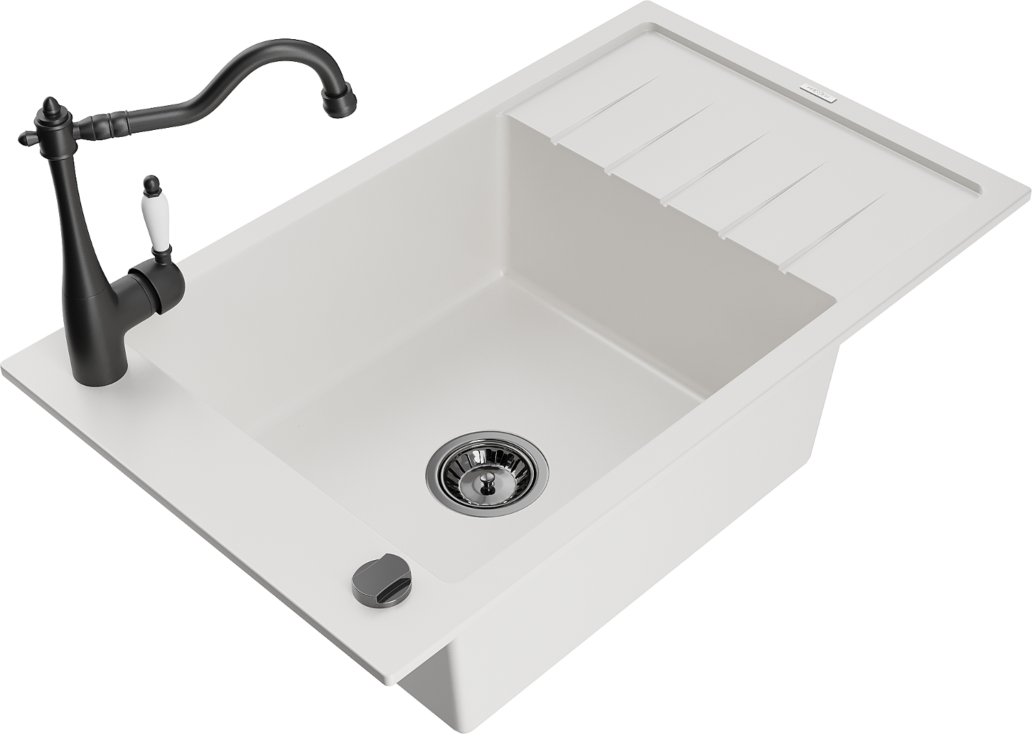 Mexen Elias lavello da cucina in granito 1-vasca con gocciolatoio e rubinetto da cucina Carla, bianco - 6511-20-670700-70