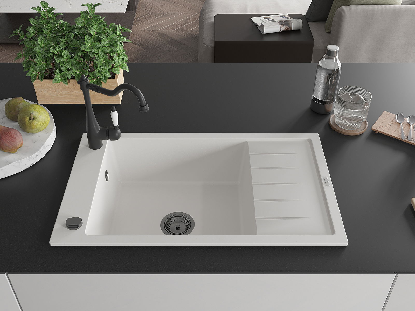 La scelta di un lavello con sgocciolatoio è una soluzione pratica che consente di riporre piatti, verdure e frutta lavati. Lo sgocciolatoio facilita la cucina quotidiana e aiuta a mantenere l'ordine in cucina.