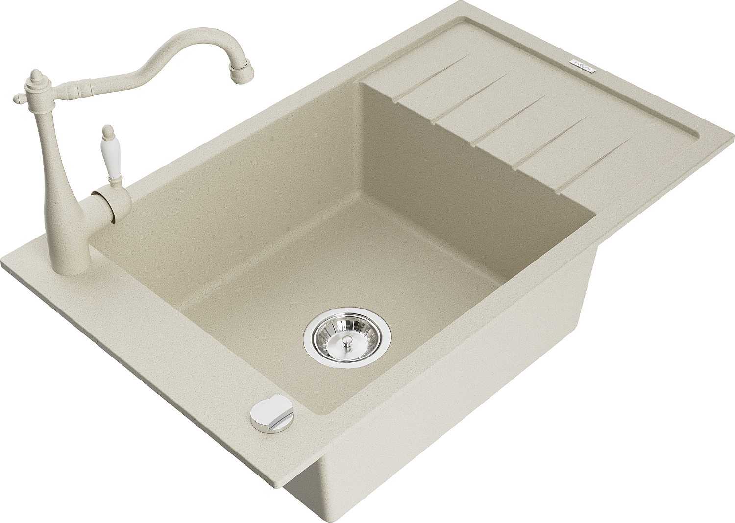 Mexen Elias lavello da cucina in granito a 1 vasca con scolapiatti e miscelatore cucina Carla, beige - 6511-69-670700-69