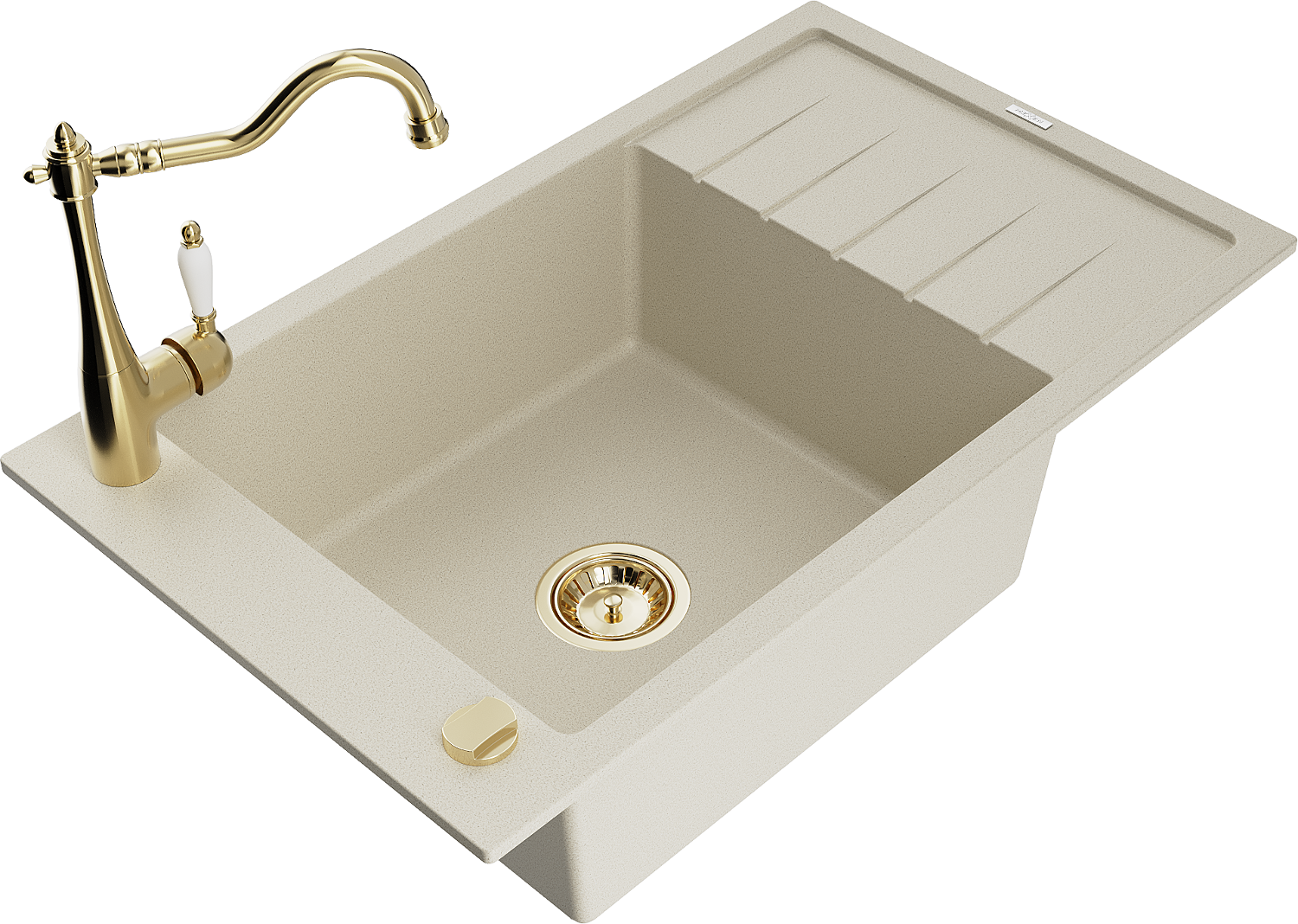 Mexen Elias lavello in granito a 1 vasca con gocciolatoio e miscelatore cucina Carla, beige - 6511-69-670700-50