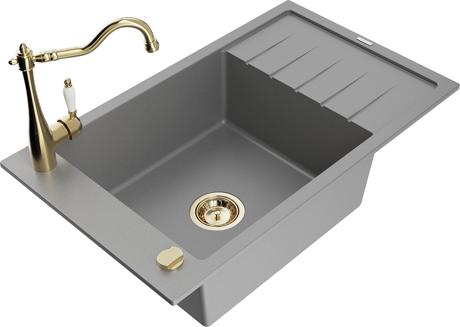 Mexen Elias lavello in granito a 1 vasca con scolapiatti e rubinetto da cucina Carla, grigio - 6511-71-670700-50