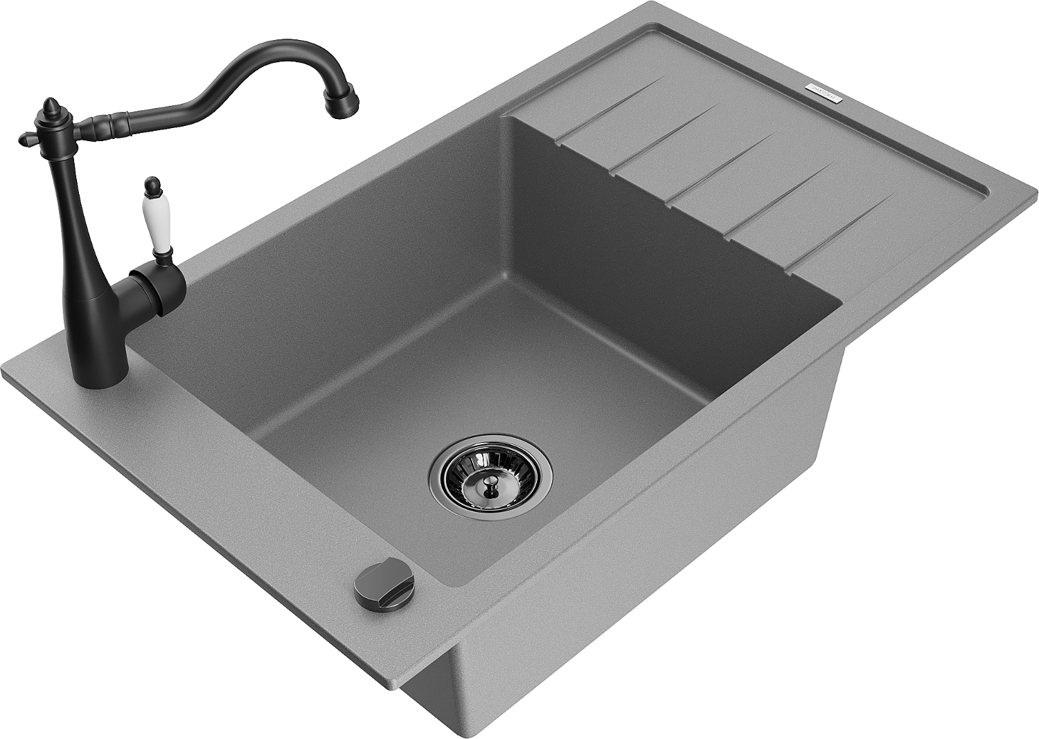 Mexen Elias lavello in granito 1-vasca con scolapiatti e rubinetto da cucina Carla, grigio - 6511-71-670700-70-B