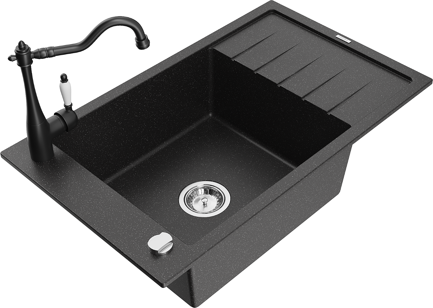 Mexen Elias lavello in granito a 1 vasca con scolapiatti e rubinetto da cucina Carla, nero/argento metallizzato