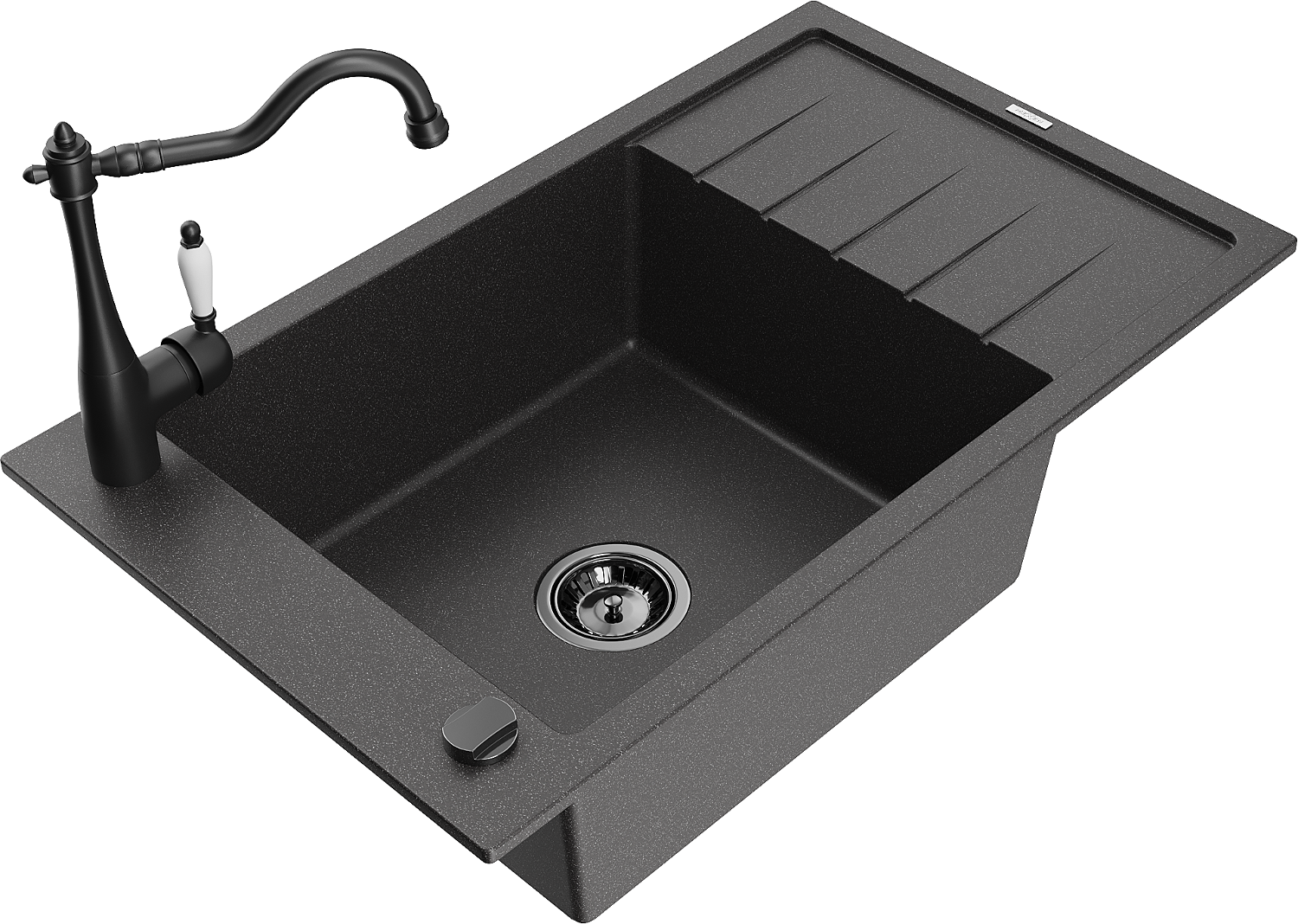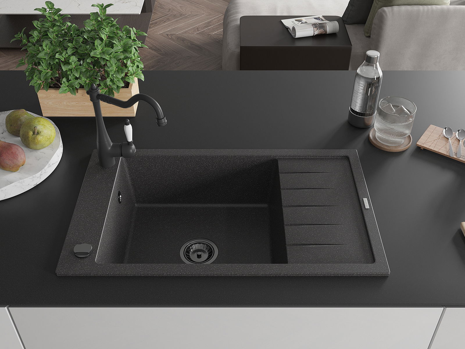 Il lavello è realizzato in granito di alta qualità. Rappresenta un complemento elegante e, soprattutto, pratico per ogni cucina, indipendentemente dal suo stile. L'alta qualità e la durata del granito garantiscono un utilizzo che dura per molti anni.