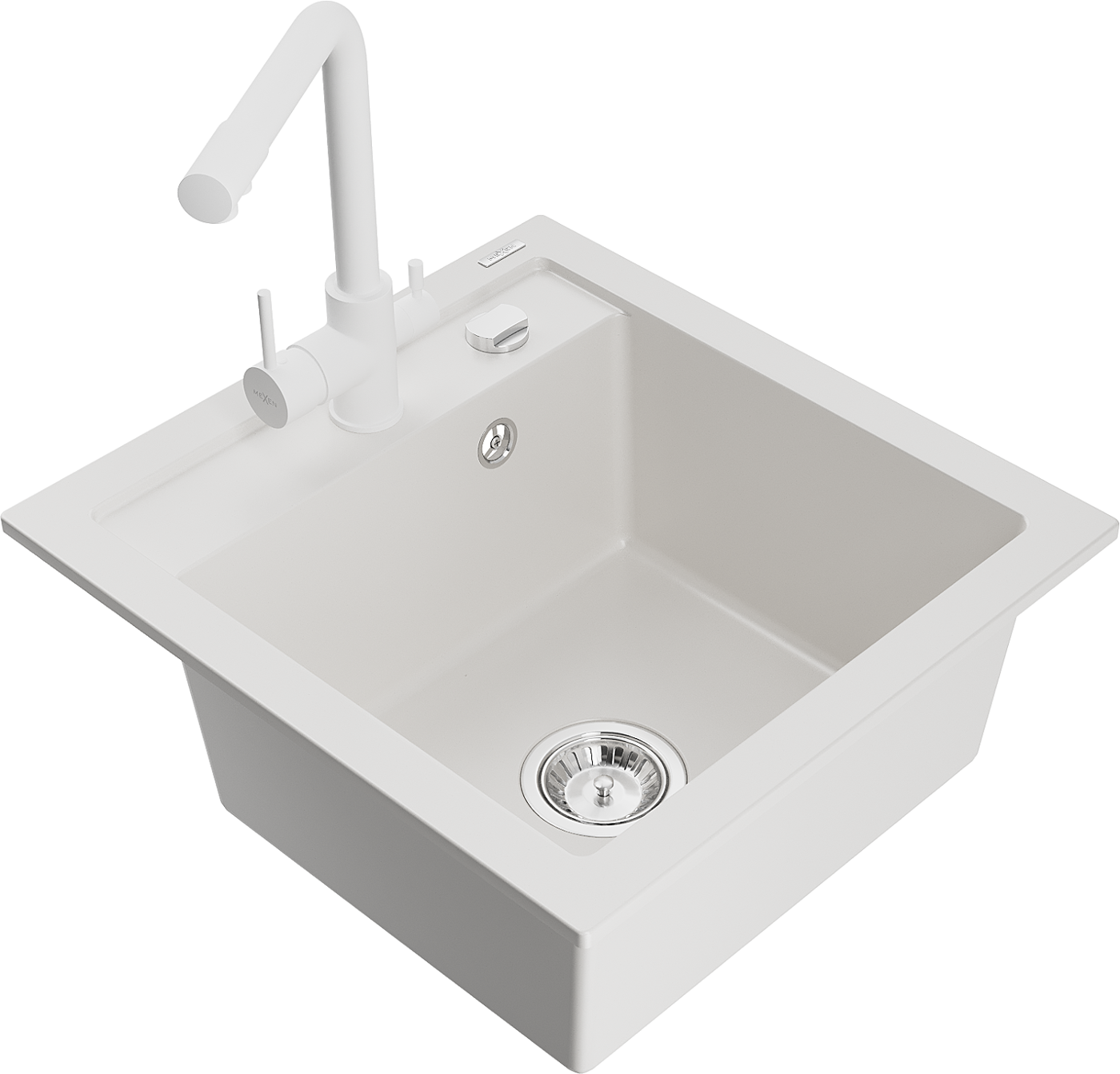 Mexen Vito lavello in granito a 1 vasca con miscelatore da cucina Duero, bianco - 6503-20-671600-20