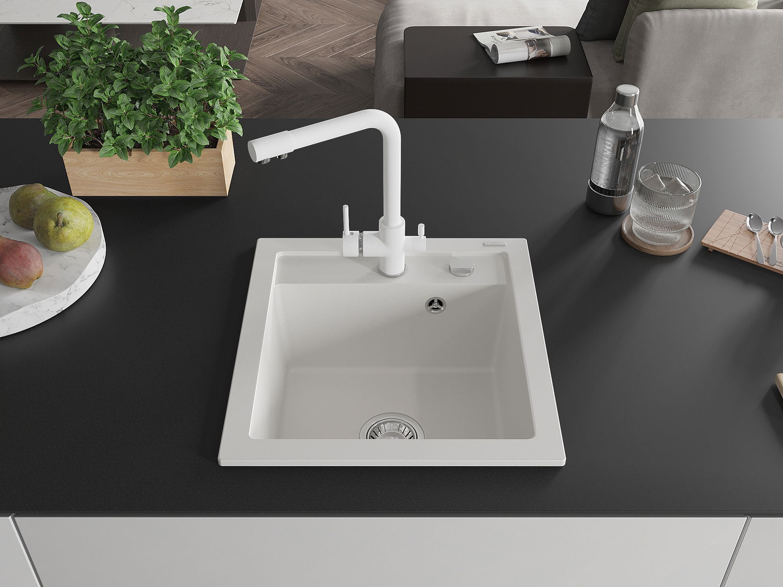 Il lavello è realizzato in granito di alta qualità. Rappresenta un complemento elegante e, soprattutto, pratico per ogni cucina, indipendentemente dal suo stile. L'alta qualità e la durata del granito garantiscono un utilizzo che dura per molti anni.