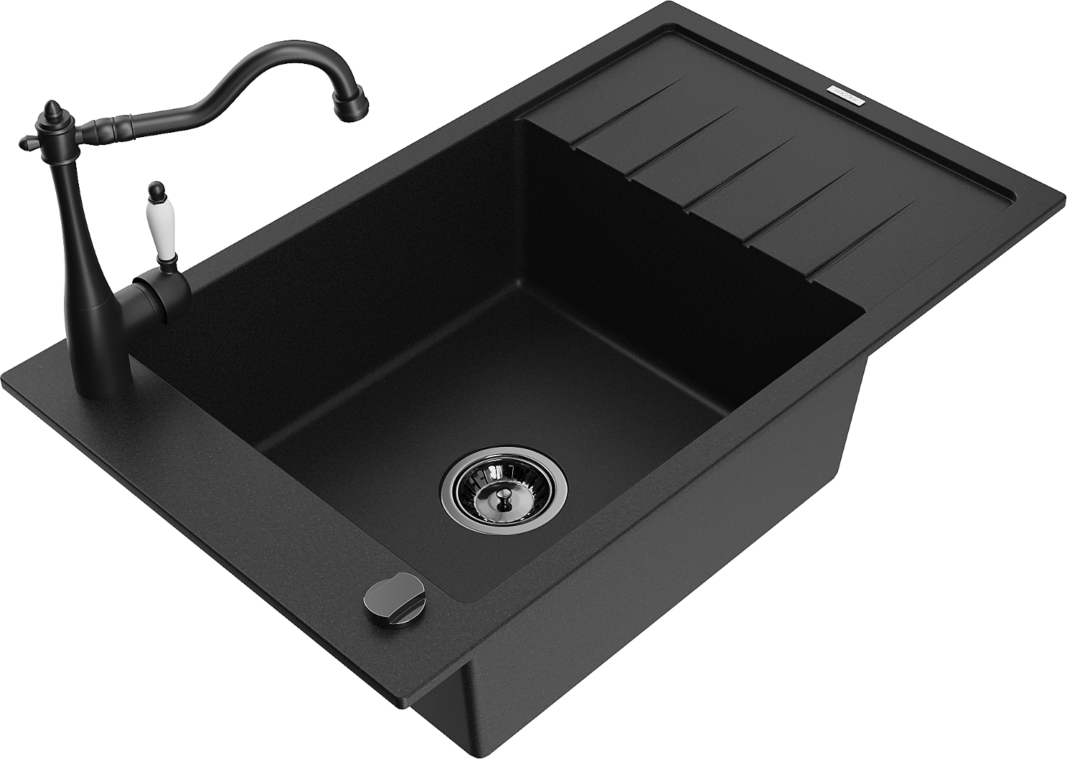 Mexen Elias lavello in granito a 1 vasca con scolapiatti e miscelatore da cucina Carla, nero - 6511-77-670700-70-B