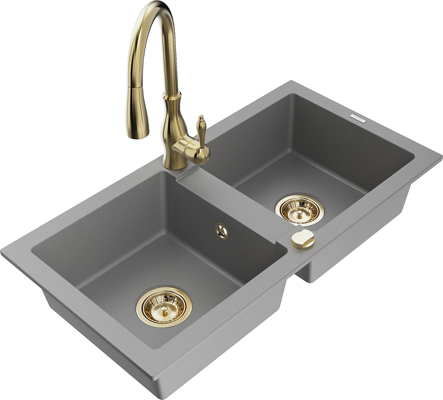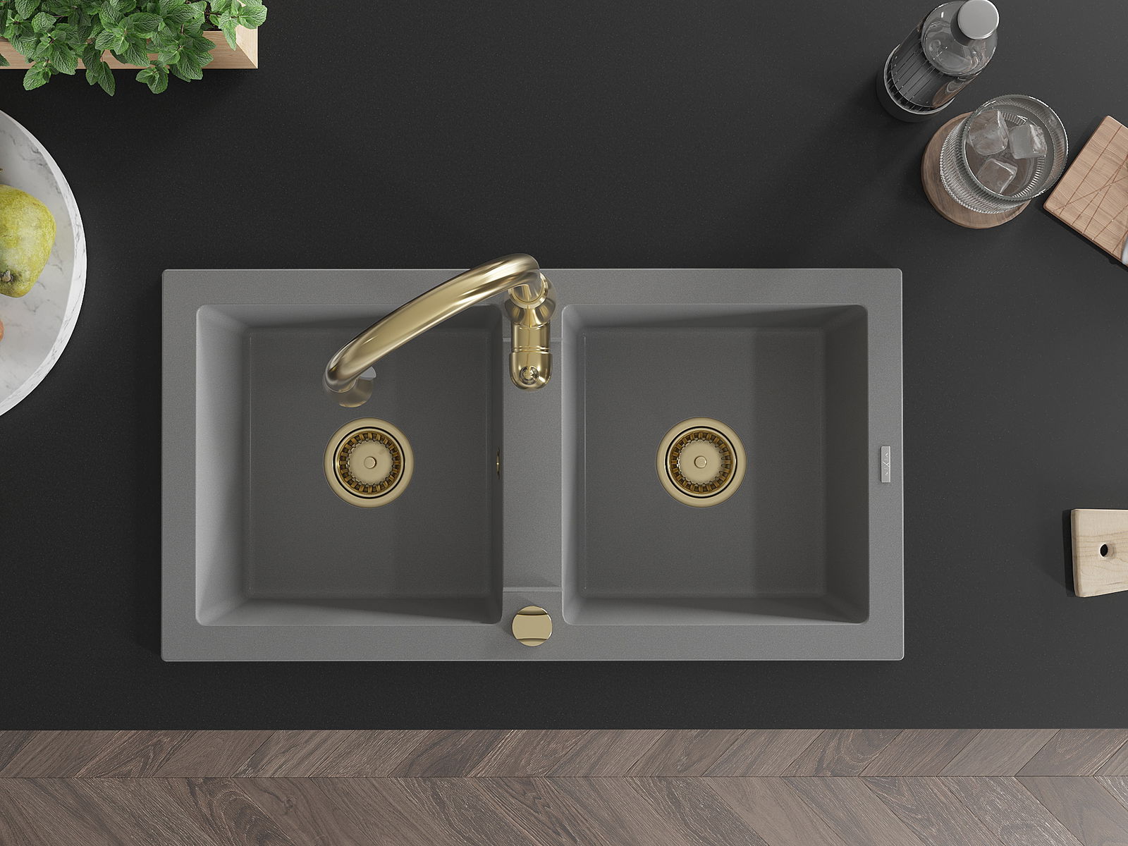 Mexen Mario lavello in granito a 2 vasche con miscelatore cucina Savita, grigio - 6504-71-672601-50