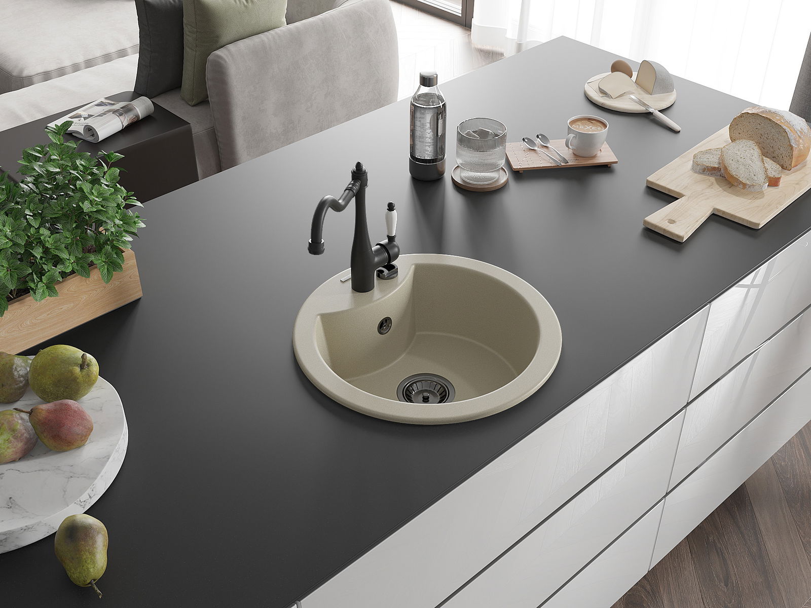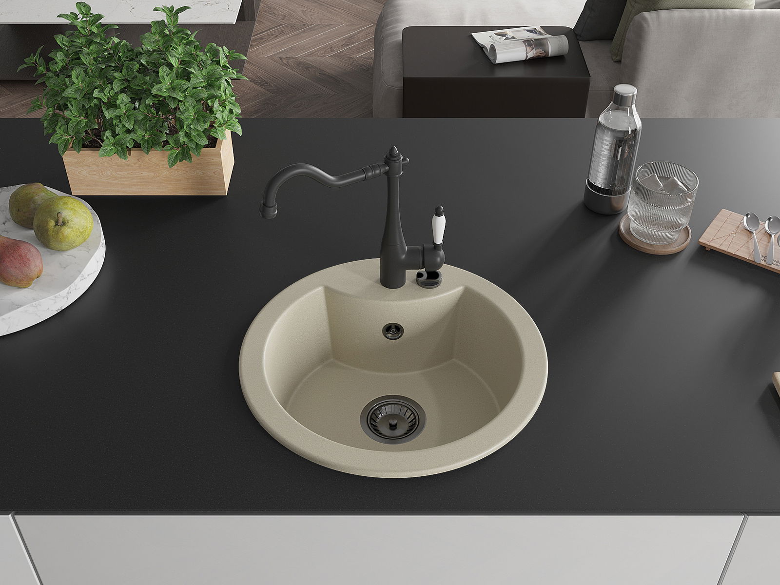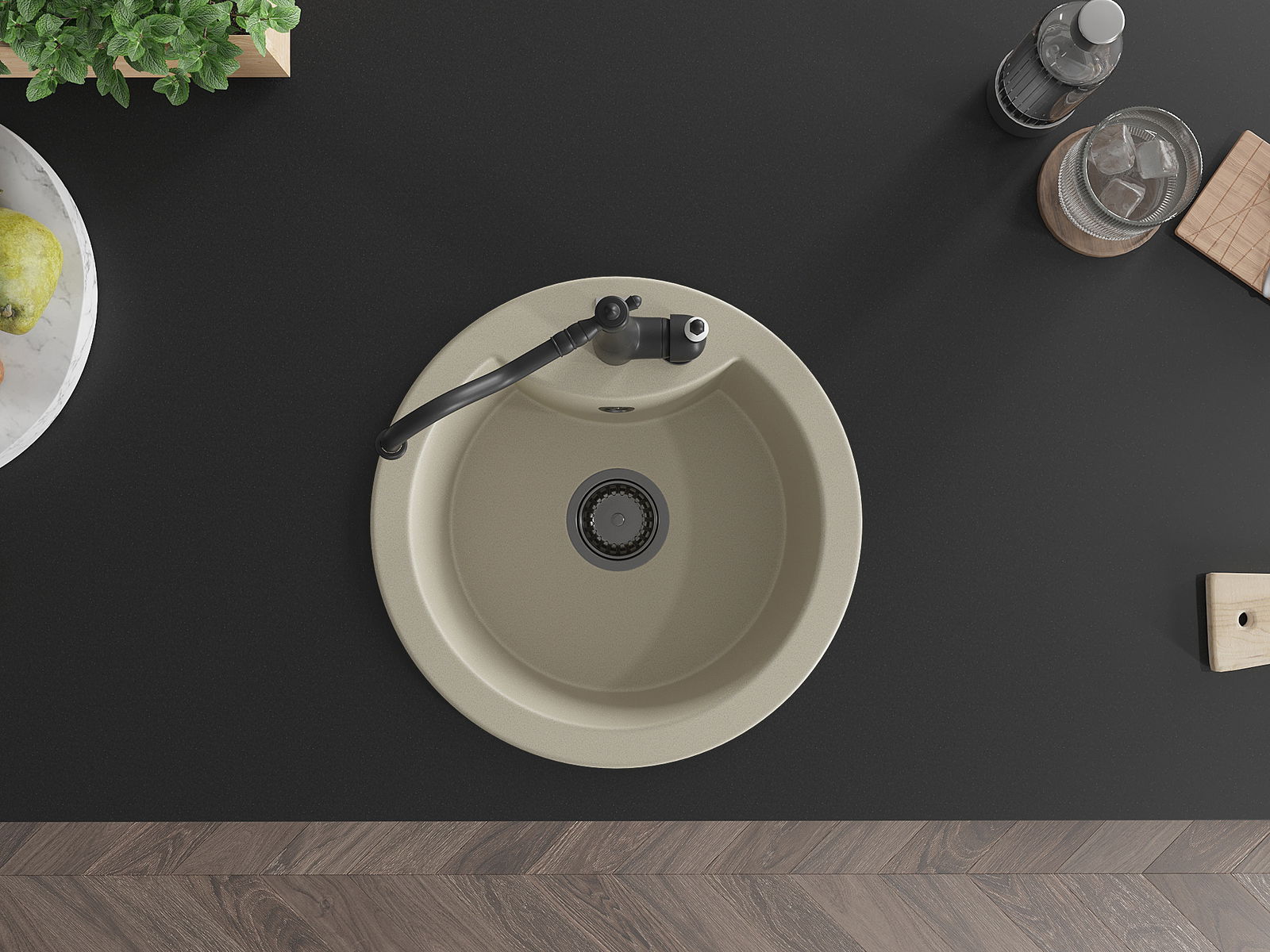 Il lavello è realizzato in granito di alta qualità. Rappresenta un complemento elegante e, soprattutto, pratico per ogni cucina, indipendentemente dal suo stile. L'alta qualità e la durata del granito garantiscono un utilizzo che dura per molti anni.