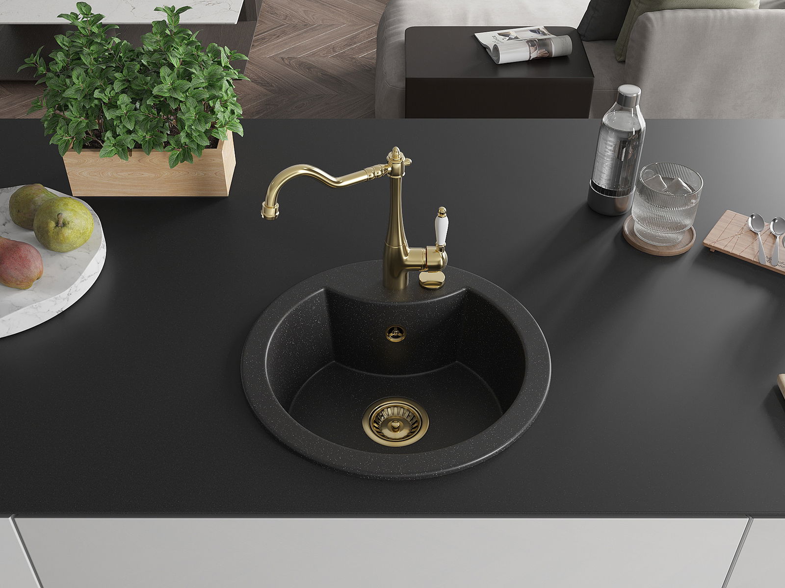 Il lavello è realizzato in granito di alta qualità. Rappresenta un complemento elegante e, soprattutto, pratico per ogni cucina, indipendentemente dal suo stile. L'alta qualità e la durata del granito garantiscono un utilizzo che dura per molti anni.