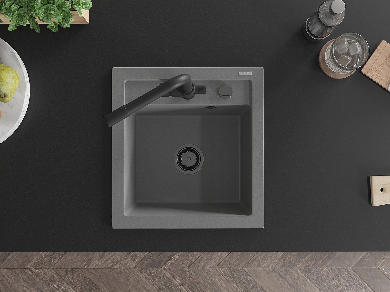 Il lavello ha un foro fresato di 35 mm di diametro da sfondare autonomamente. Può essere utilizzato, tra l'altro, per montare un dosatore di liquidi, che eliminerà la presenza di bottiglie di plastica in cucina e conferirà un tocco di eleganza.