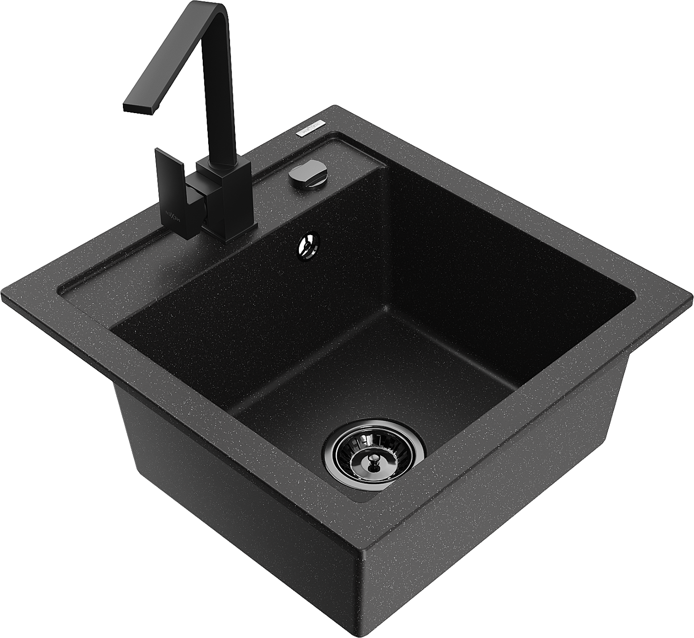 Mexen Vito lavello in granito a 1 vasca con miscelatore da cucina Rita, nero/metallico argento - 6503-73-670300-70-B